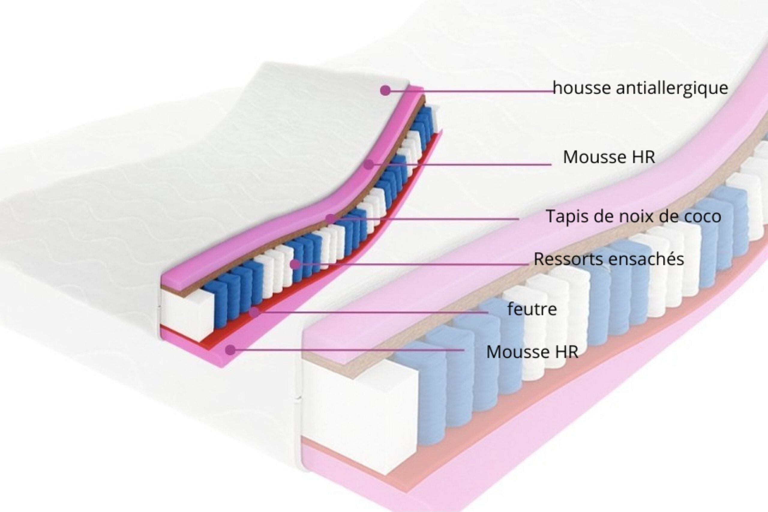 Matelas à ressorts ensachés Folyeso, 7 zones, coco, 80x200 cm, hauteur 20 cm, H3/H4, noir