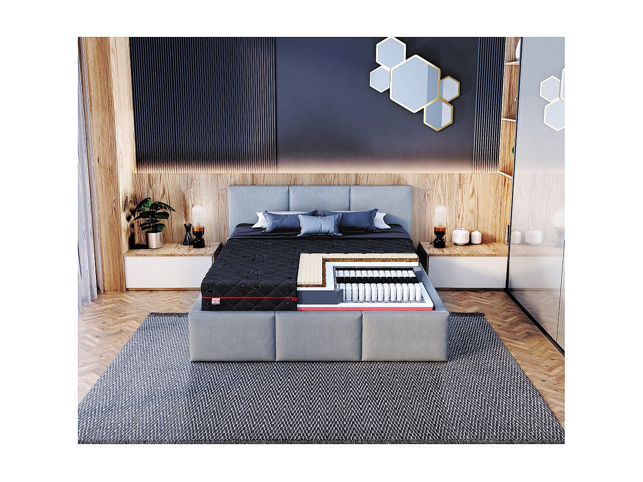 Matelas BLACKLUX - Mémoire de Forme - Latex - Ressort ensaché - Epaisseur 22 cm