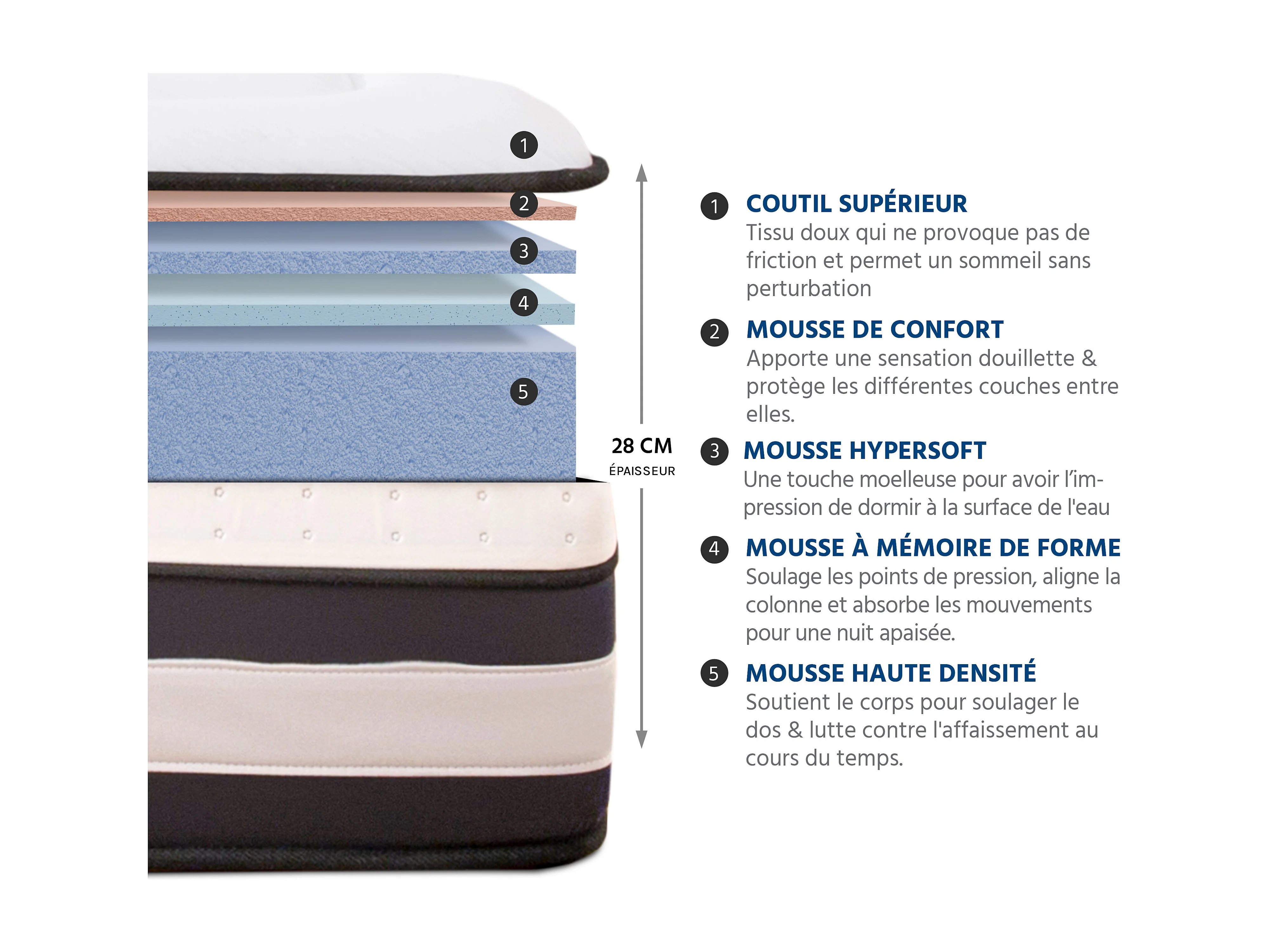 Matelas Calliope Mousse Haute densité Accueil Mémoire de forme - 140 x 190 cm