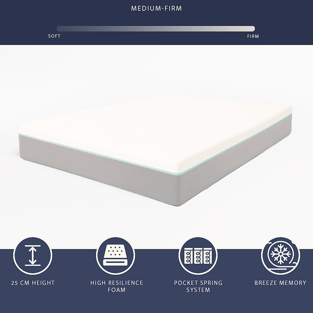 Matelas double 160x200 mousse mémoire Breeze & ressorts | H 25 cm | Certif. médical classe 1 | Déhoussable