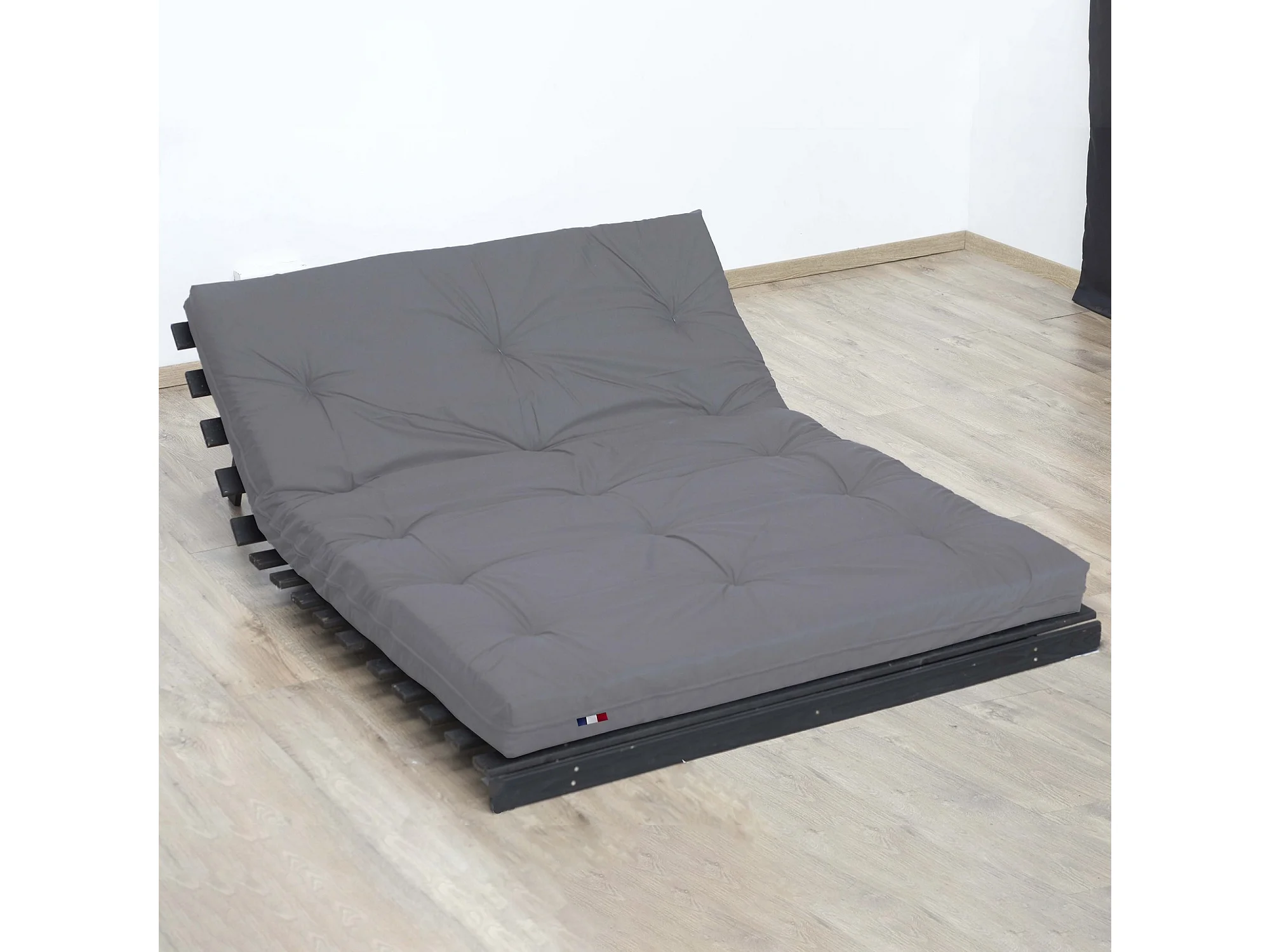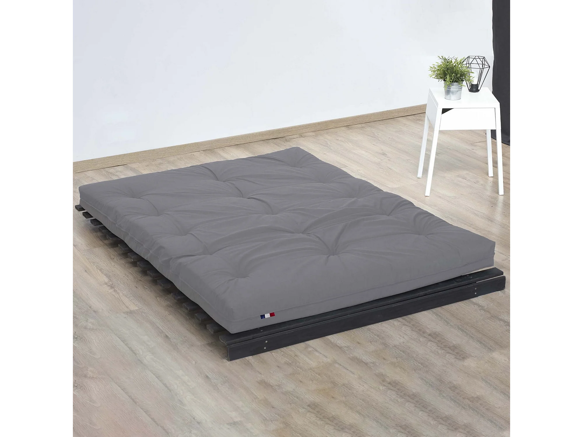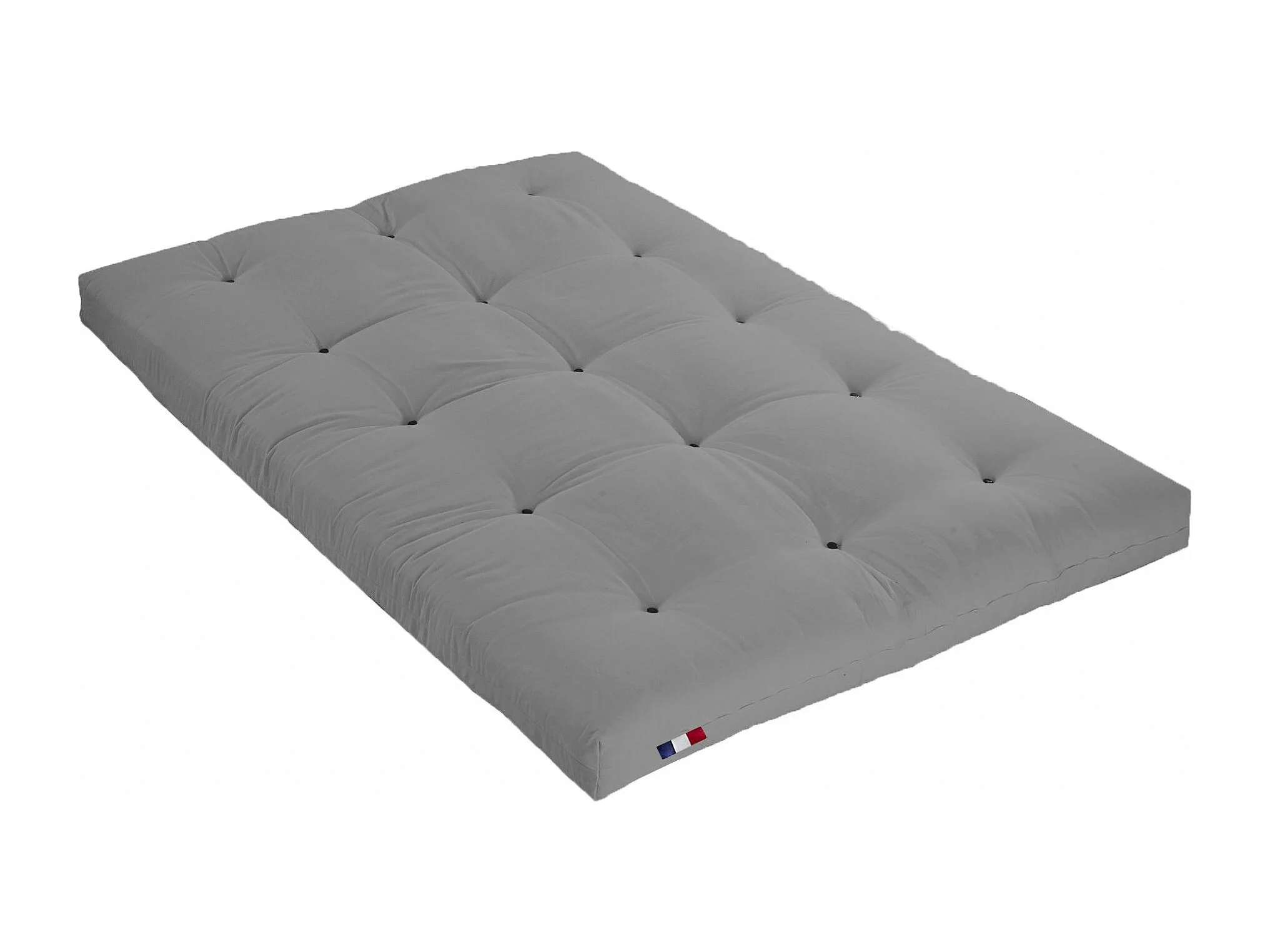 Matelas futon coton et fibres recyclés, fabriqué en France Couleur - Gris Clair, Dimensions - 160 x 200 cm