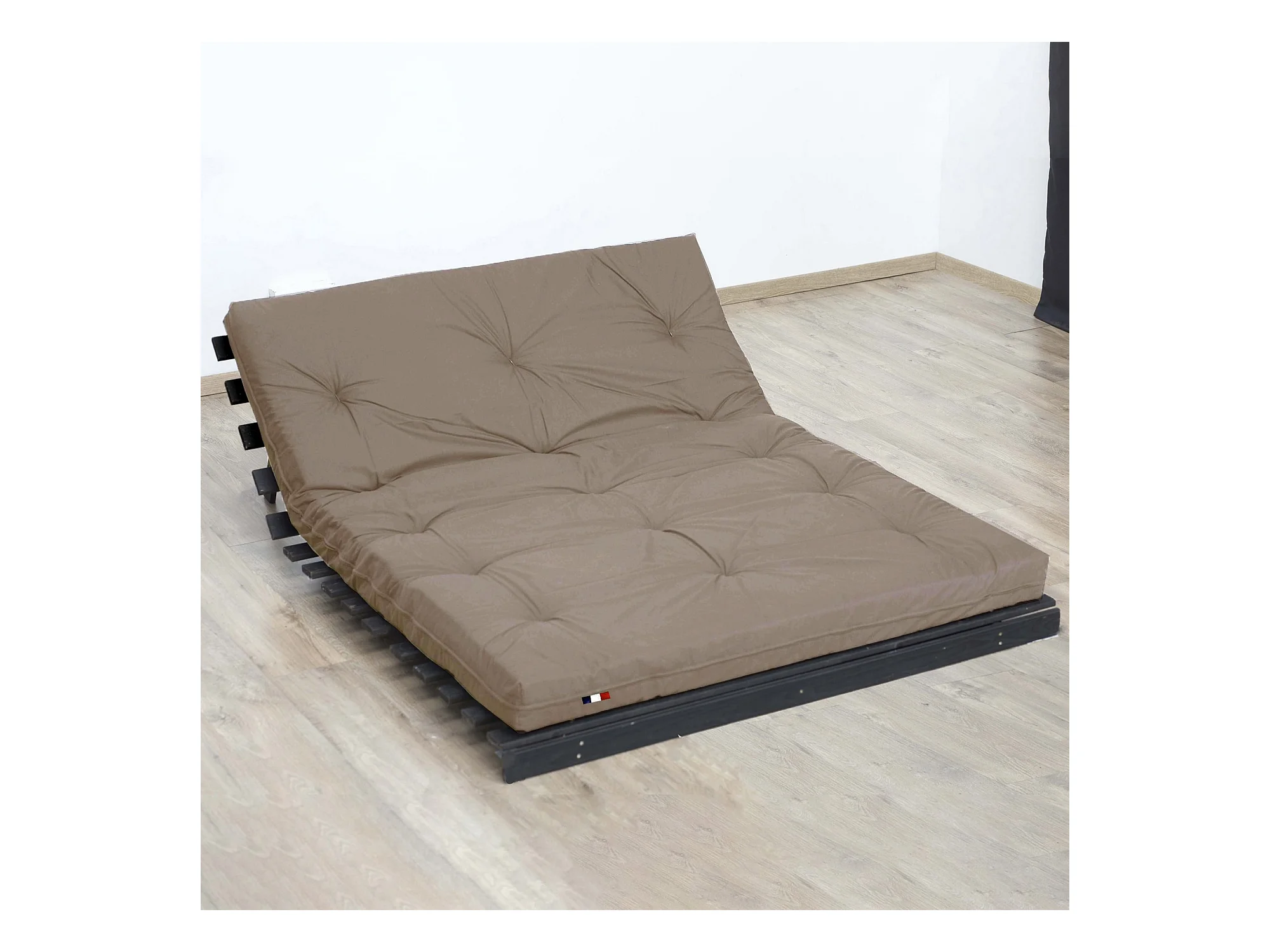 Matelas futon coton et fibres recyclés, fabriqué en France Couleur - Taupe, Dimensions - 160 x 200 cm