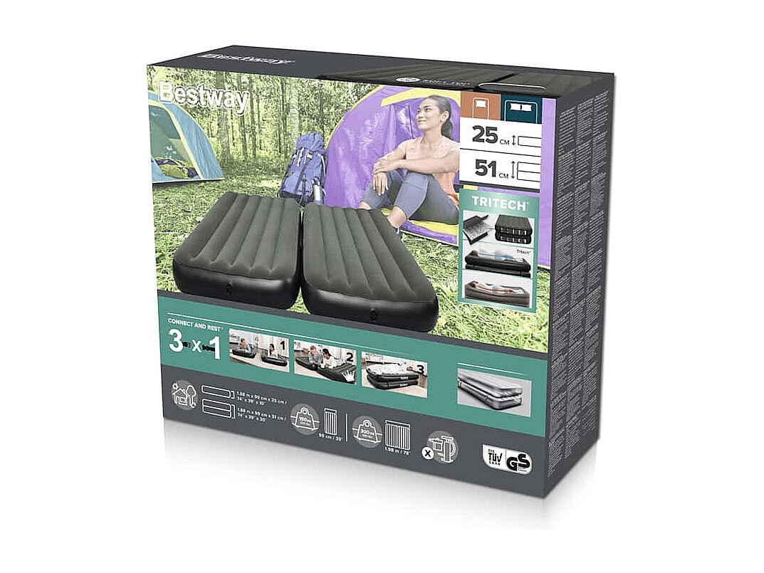 Lit gonflable 3-en-1 Noir et gris 188x99x25 cm