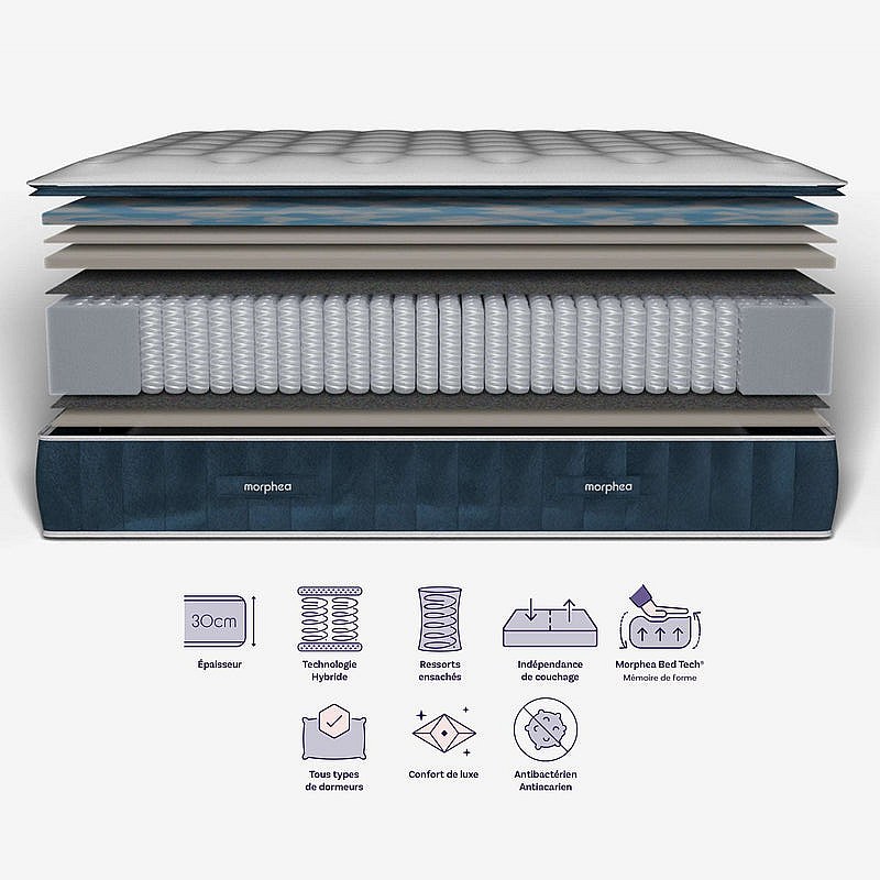 Matelas luxe hybride mémoire de forme 160x200 épais 30cm