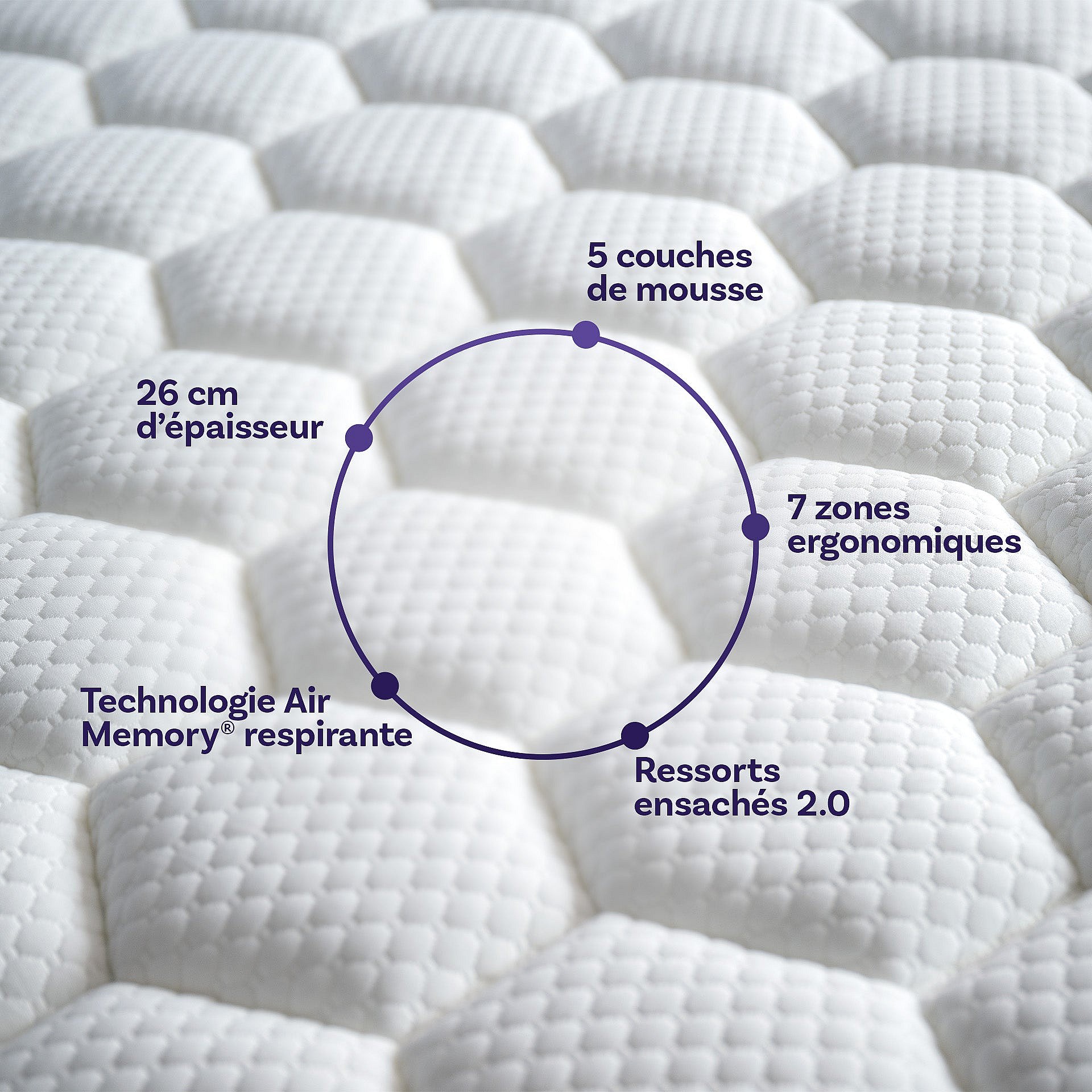 Matelas premium hybride mémoire de forme 90x200 épais 26cm