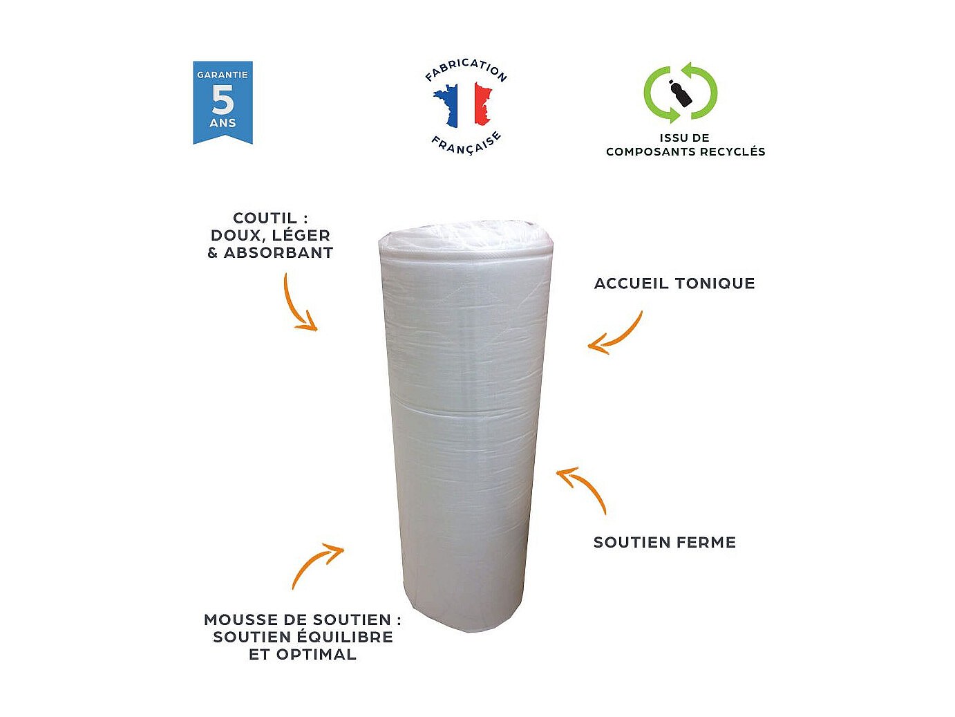 Matelas mousse + Sommier métal C220 2x90x190 Marly - Hauteur 15 cm - Soutien ferme