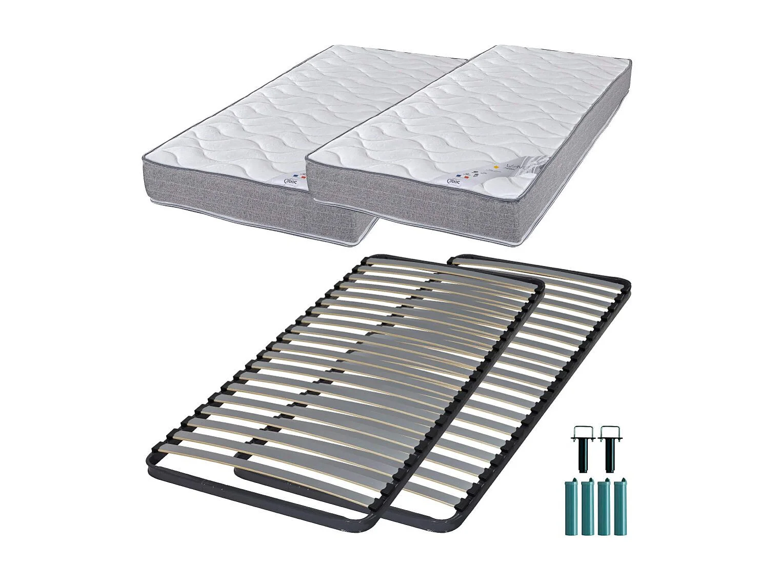 Matelas mousse + Sommier métal C220 2x90x190 Wave - Hauteur 19 cm - Soutien ferme