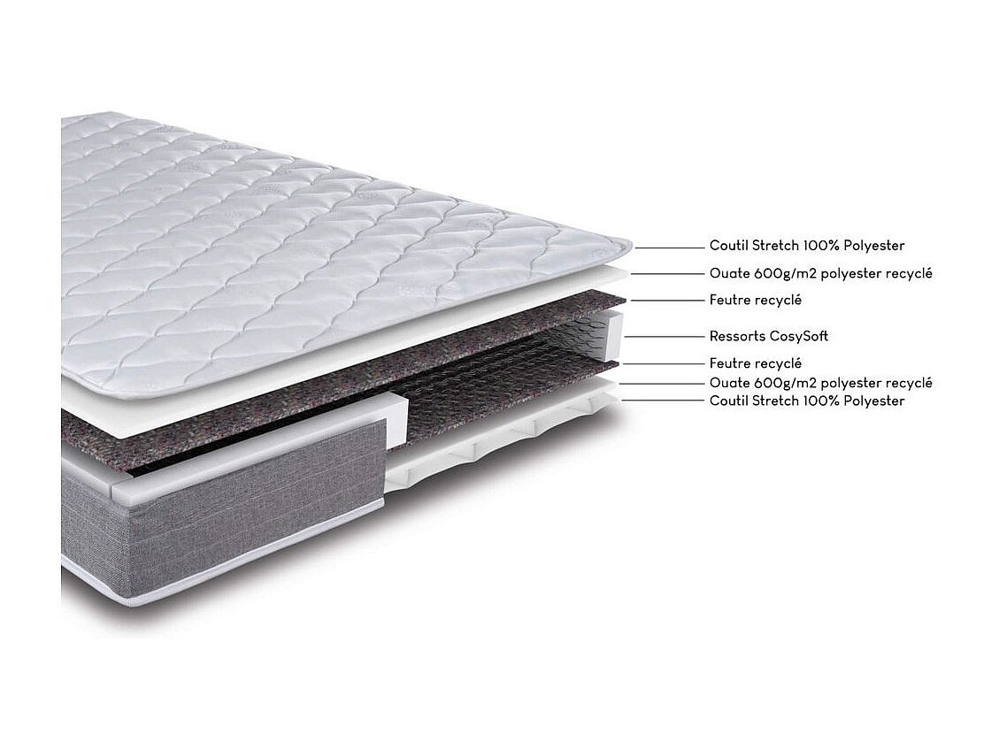Matelas ressort + Sommier Gris clair 90x190 Ryad - Hauteur 20 cm - Soutien très ferme