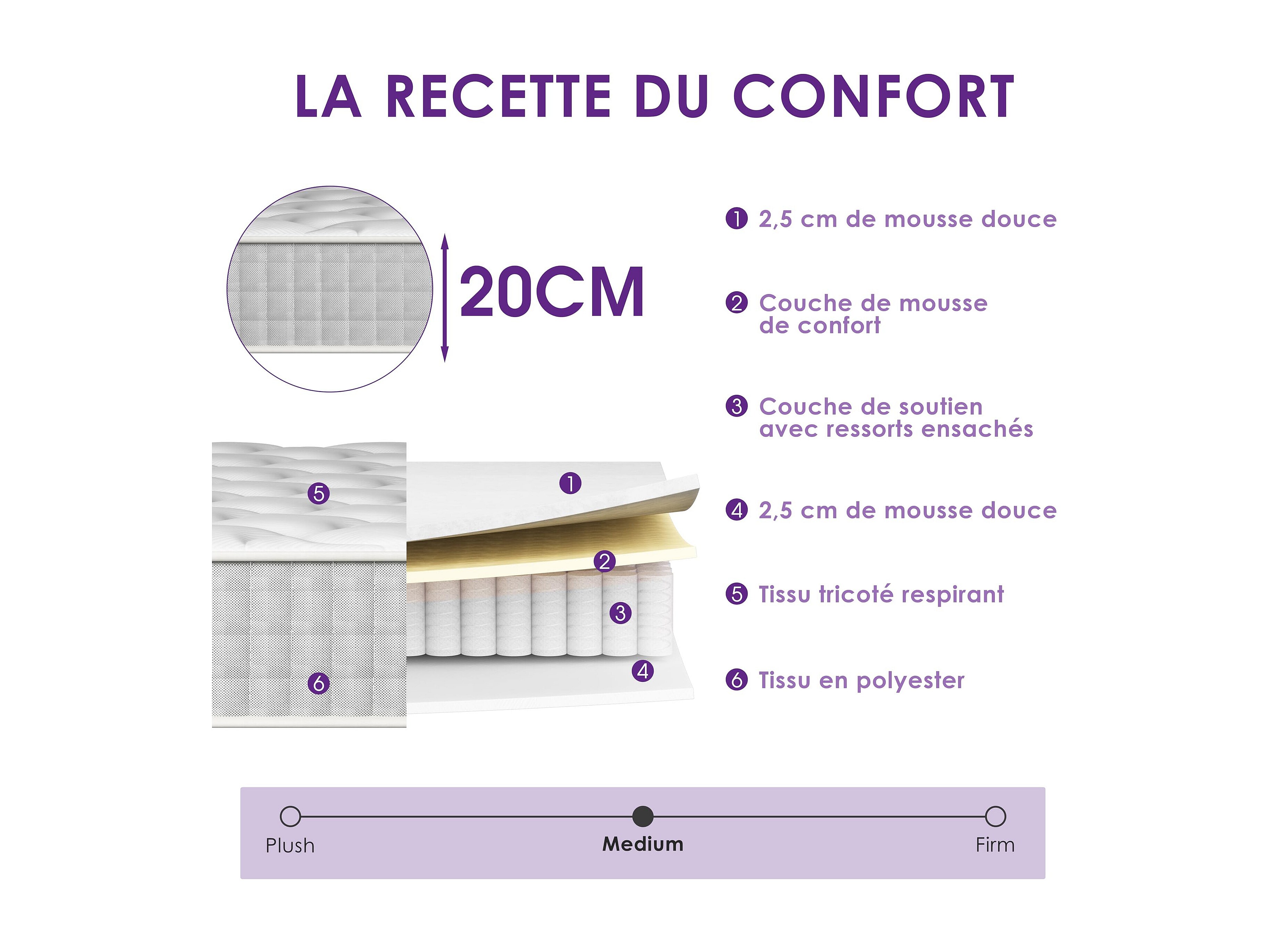 Matelas Ressorts 160x200 Épaisseur 20 cm Confort,Ergonomique 7 Zones Ergonomique