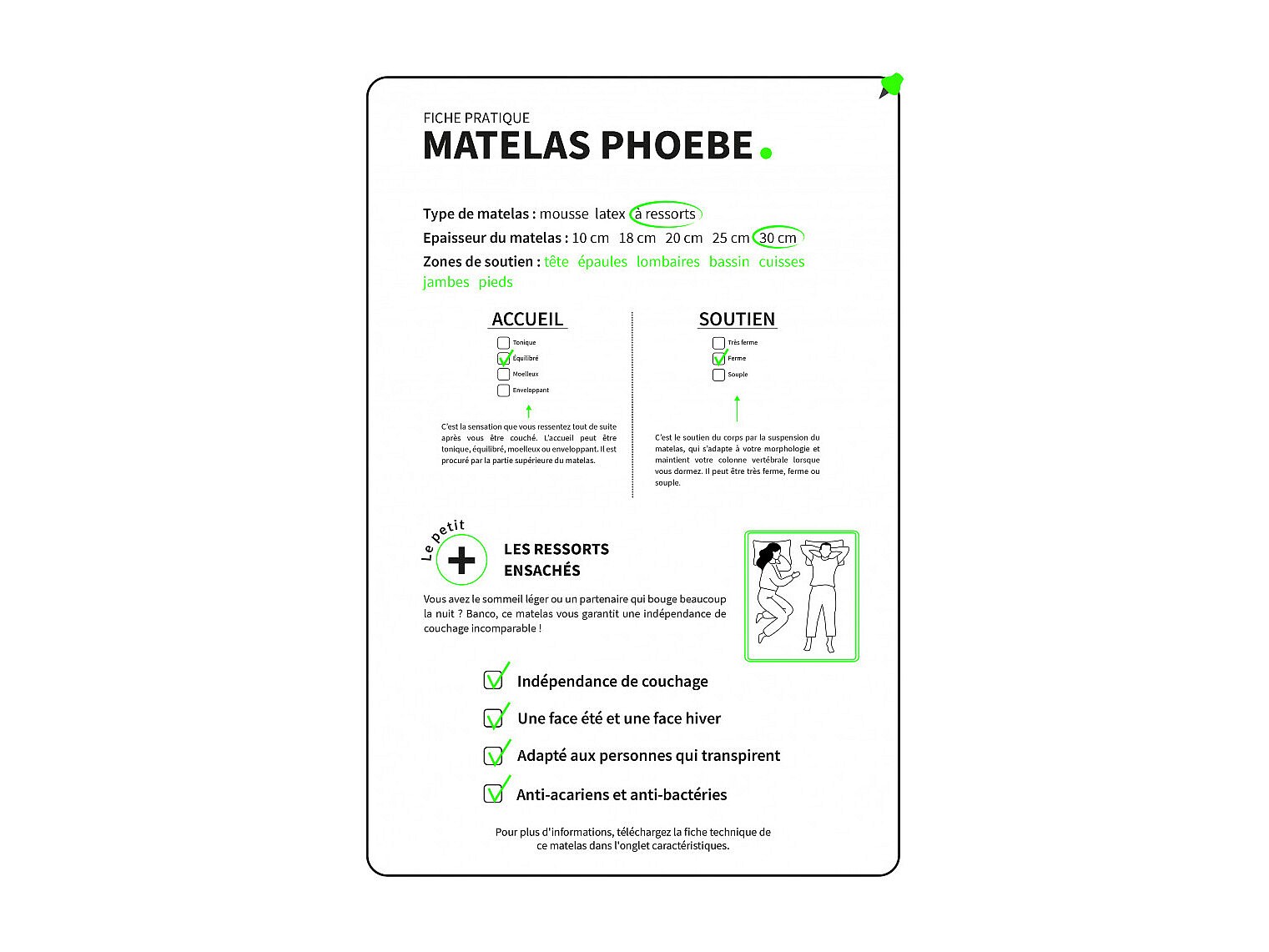 Matelas ressorts ensachés PALACIO - soutien ferme et confort équilibré Dimensions - 160 x 200 cm