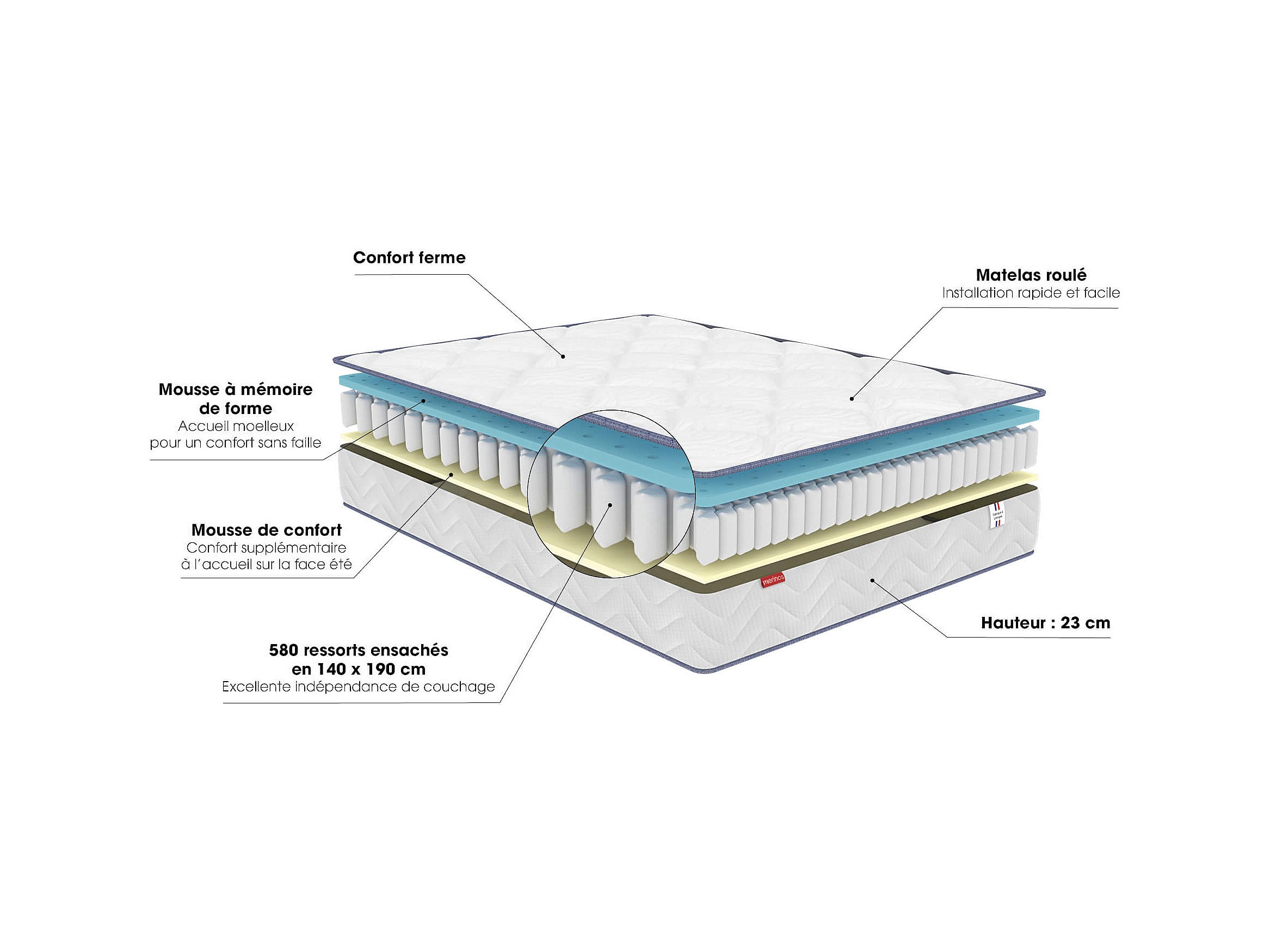 Matelas ressorts ensachés + mousse mémoire Merinos SWEETY 90x190