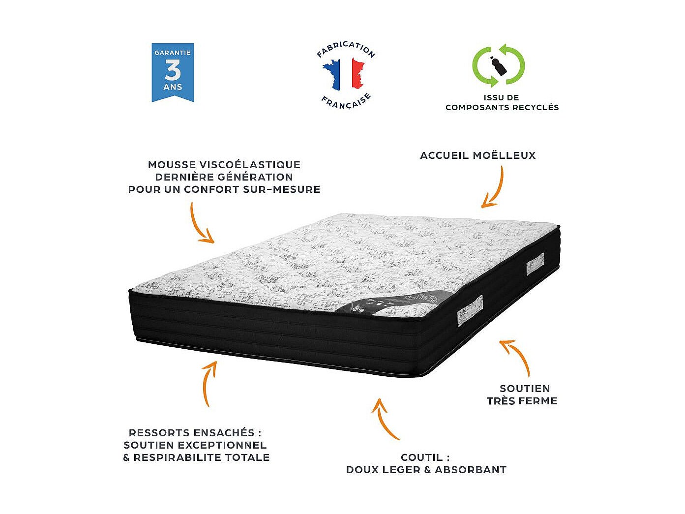 Matelas + Sommier SR9 Deco 140x190 Black Mattress - H. 25 cm - Soutien équilibré