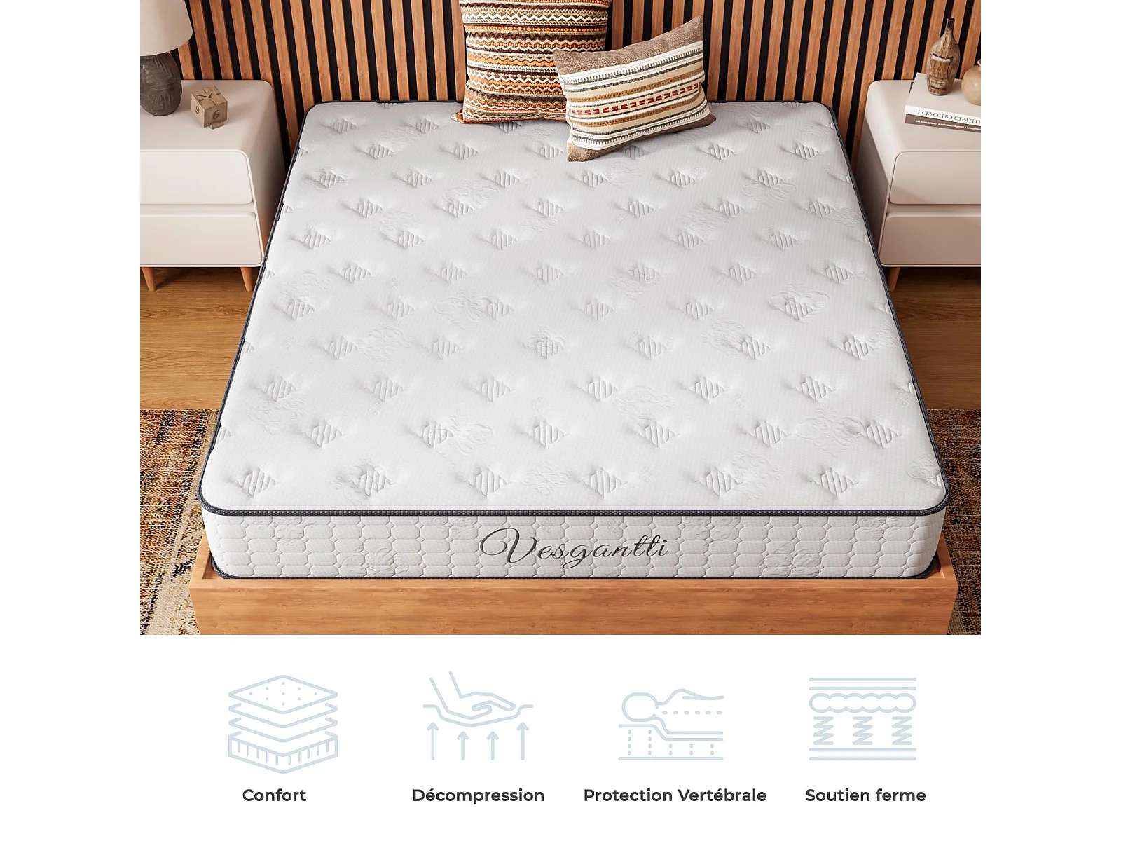 Vesgantti Matelas 80x200cm, 24cm Épais, Hybrid Ressorts Ensachés & Mousse Mémoire, 7 Zones Confort, Multicouches, Certifié Oeko-Tex