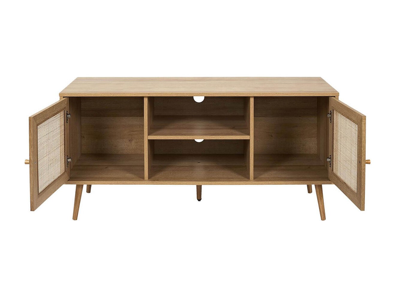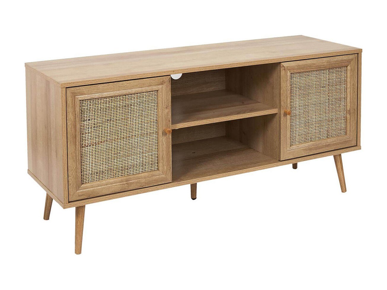 MAYA - Meuble TV 2 Portes Effet Bois et Façades Rotin