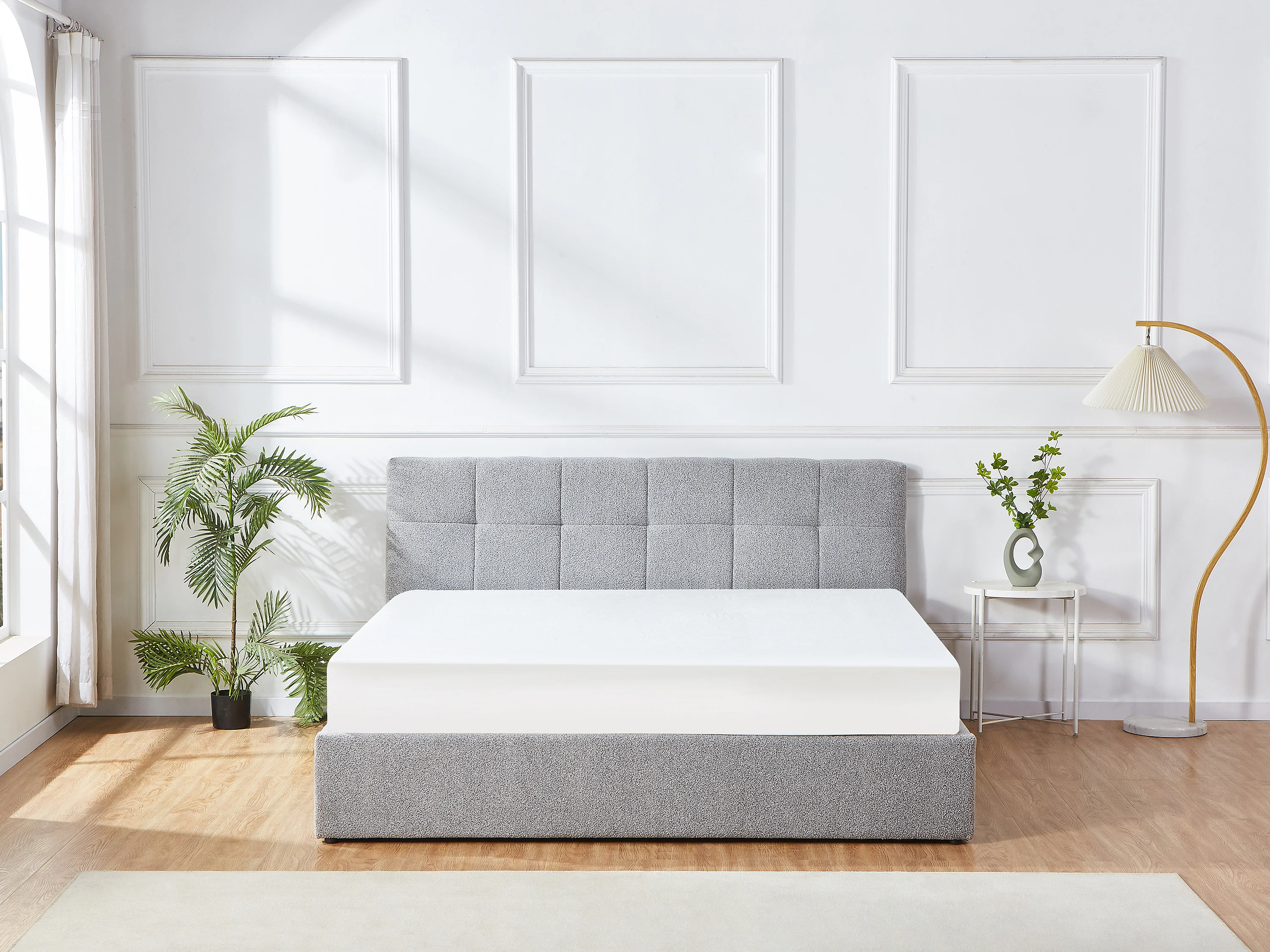 Lit coffre 180 x 200 cm - Tissu bouclette - Gris - MAZIRI
