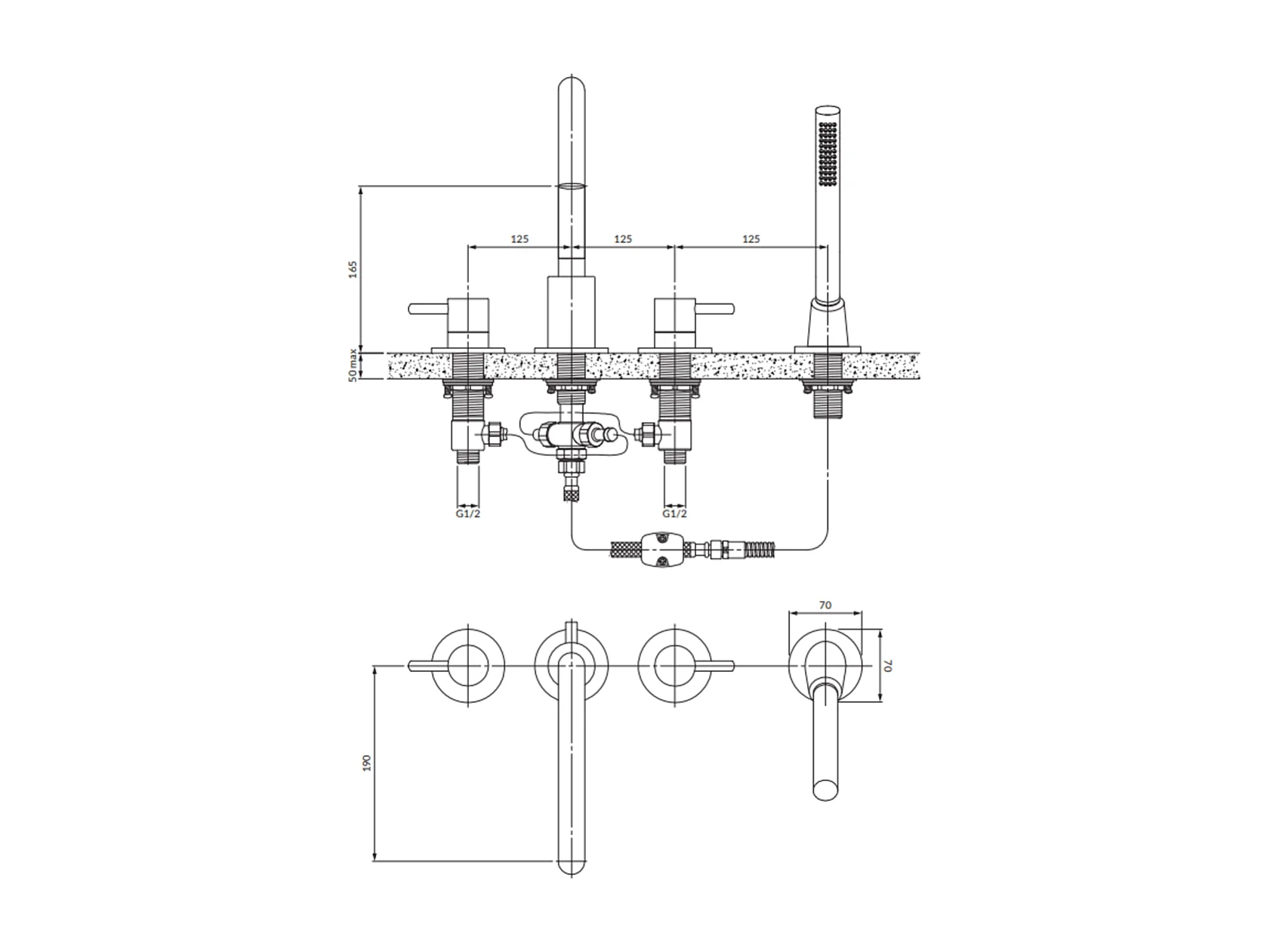 Mélangeur de bain 4 trous Y Couleur: chrome