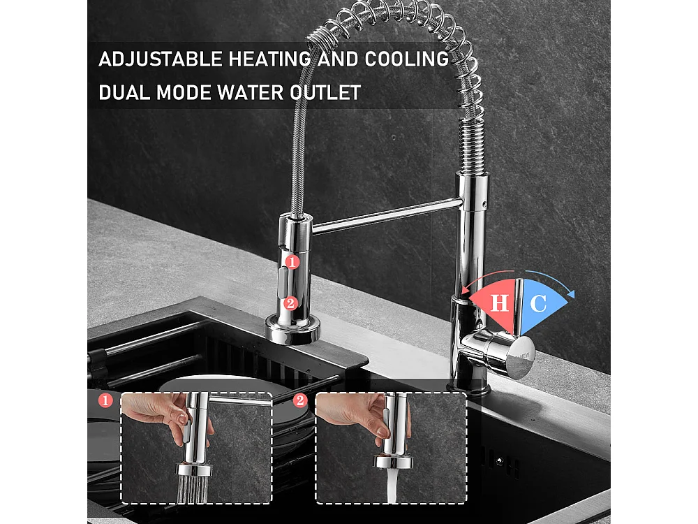 Mélangeur de Cuisine avec Douchette 360°, Argent