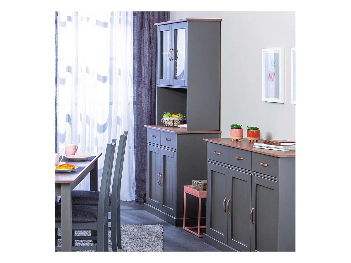 MELINA - Buffet Vaisselier 4 Portes 2 Tiroirs Coloris Gris