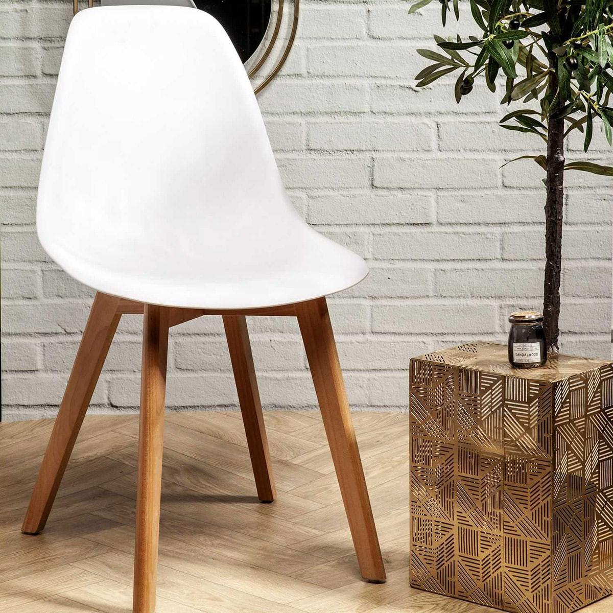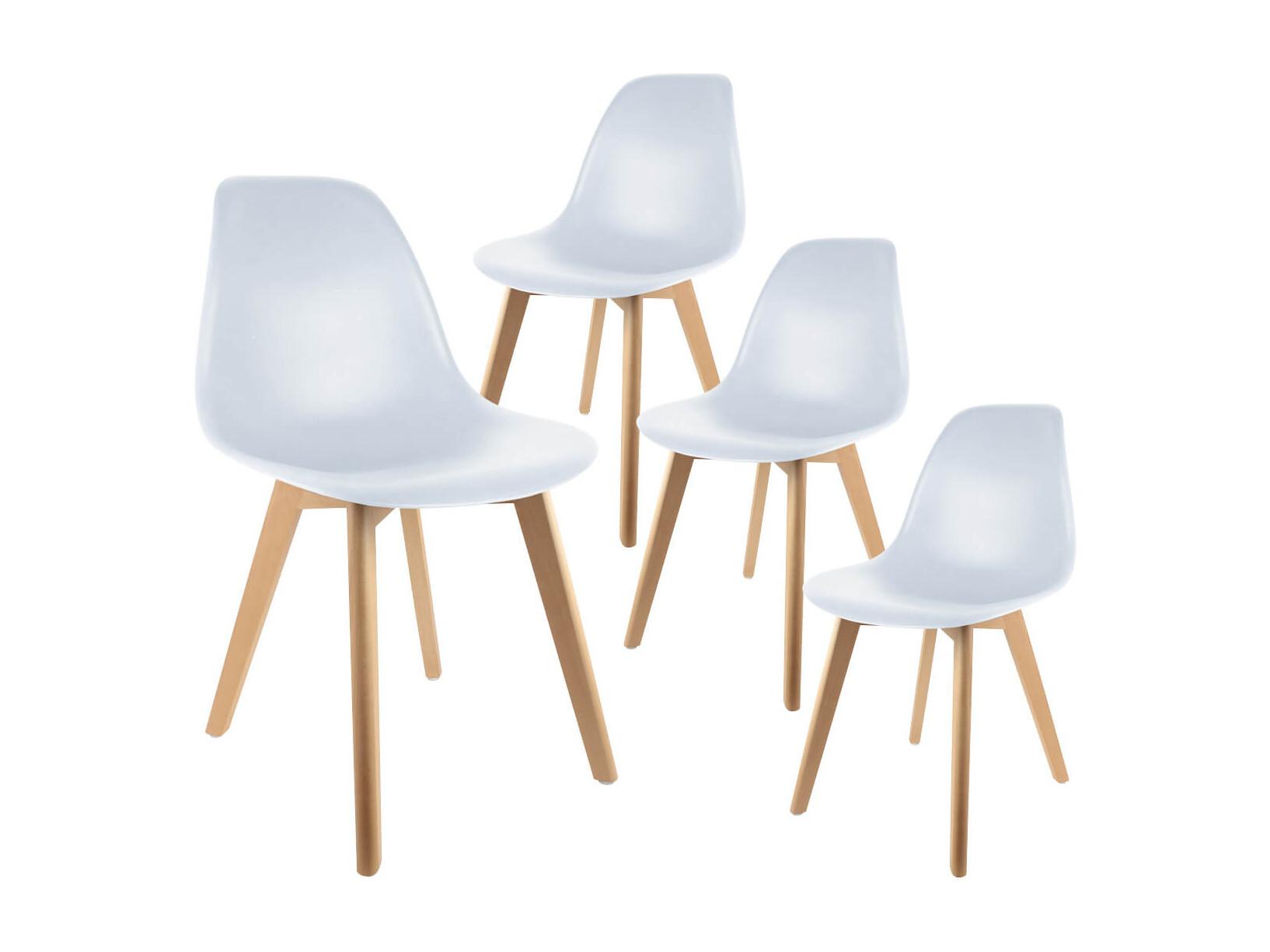 Lot 4 chaises scandinaves de cuisine siège plastique souple pieds bois clair OVA (Blanche)