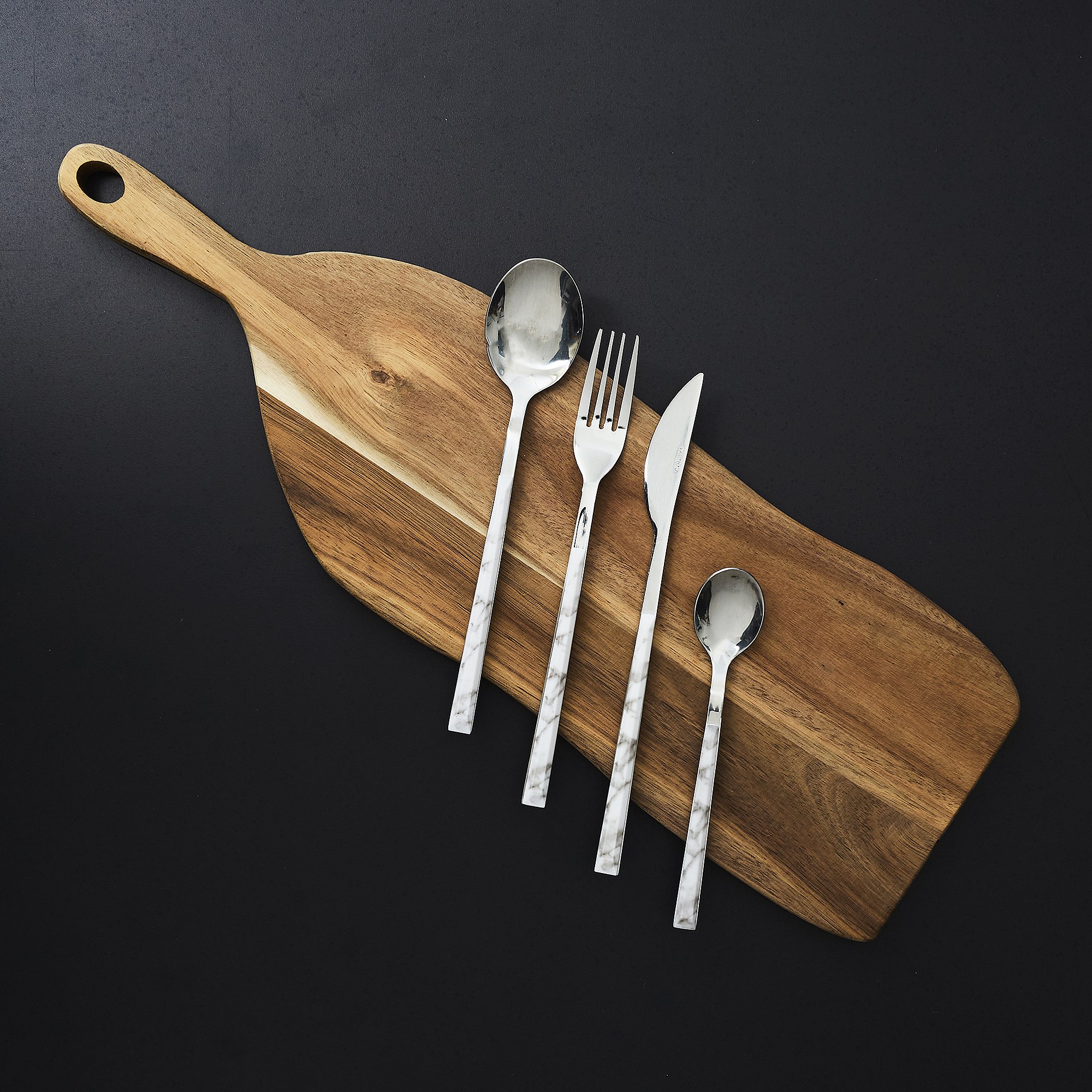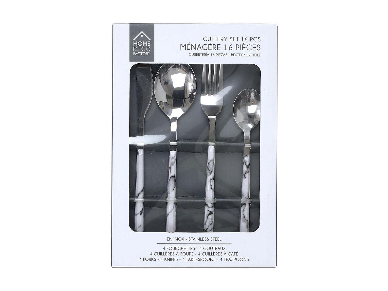 Menagere Effet Marbre X16 Noir, Blanc