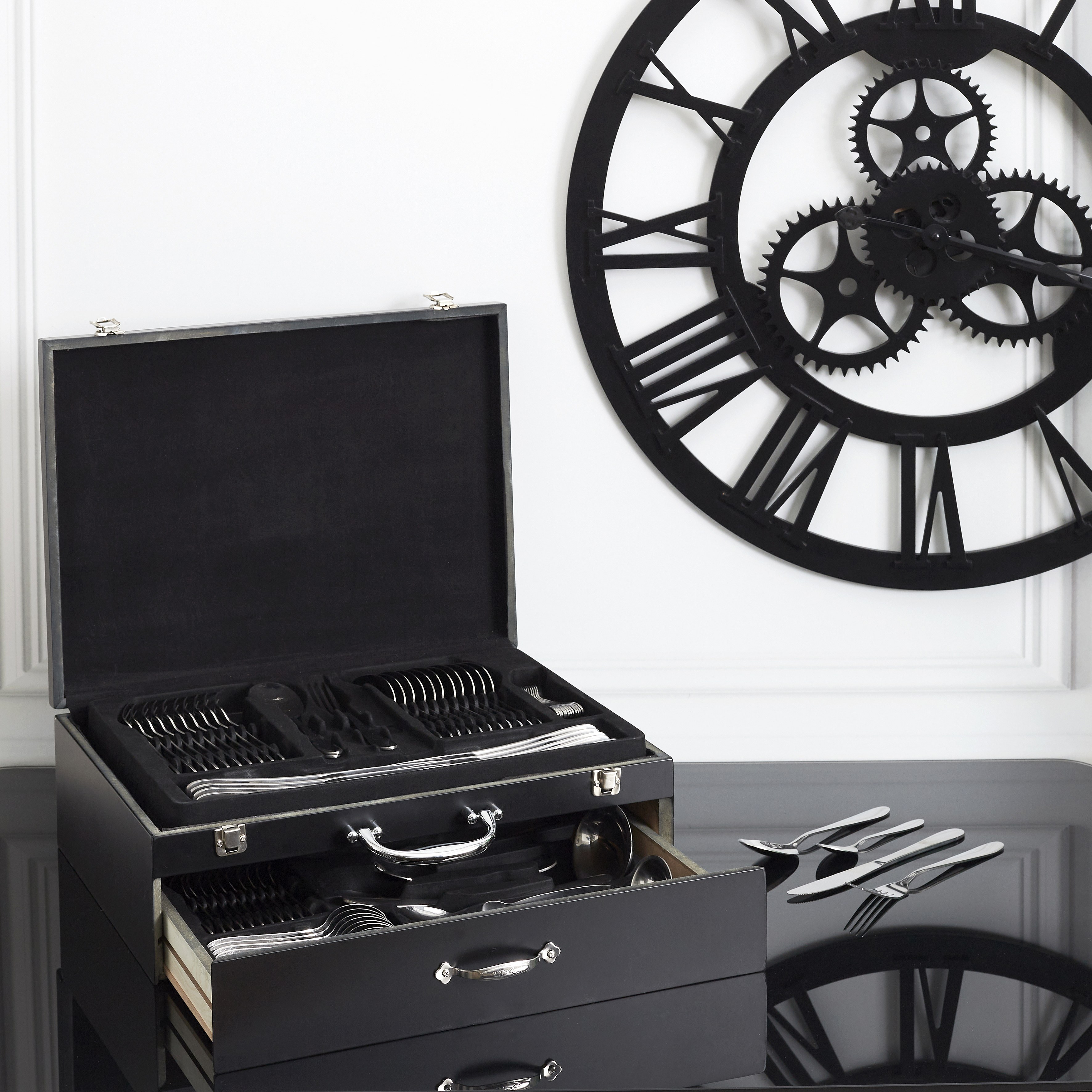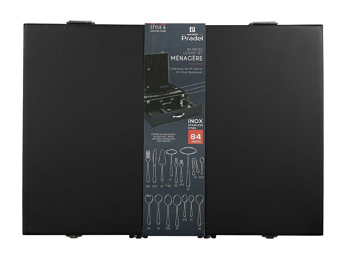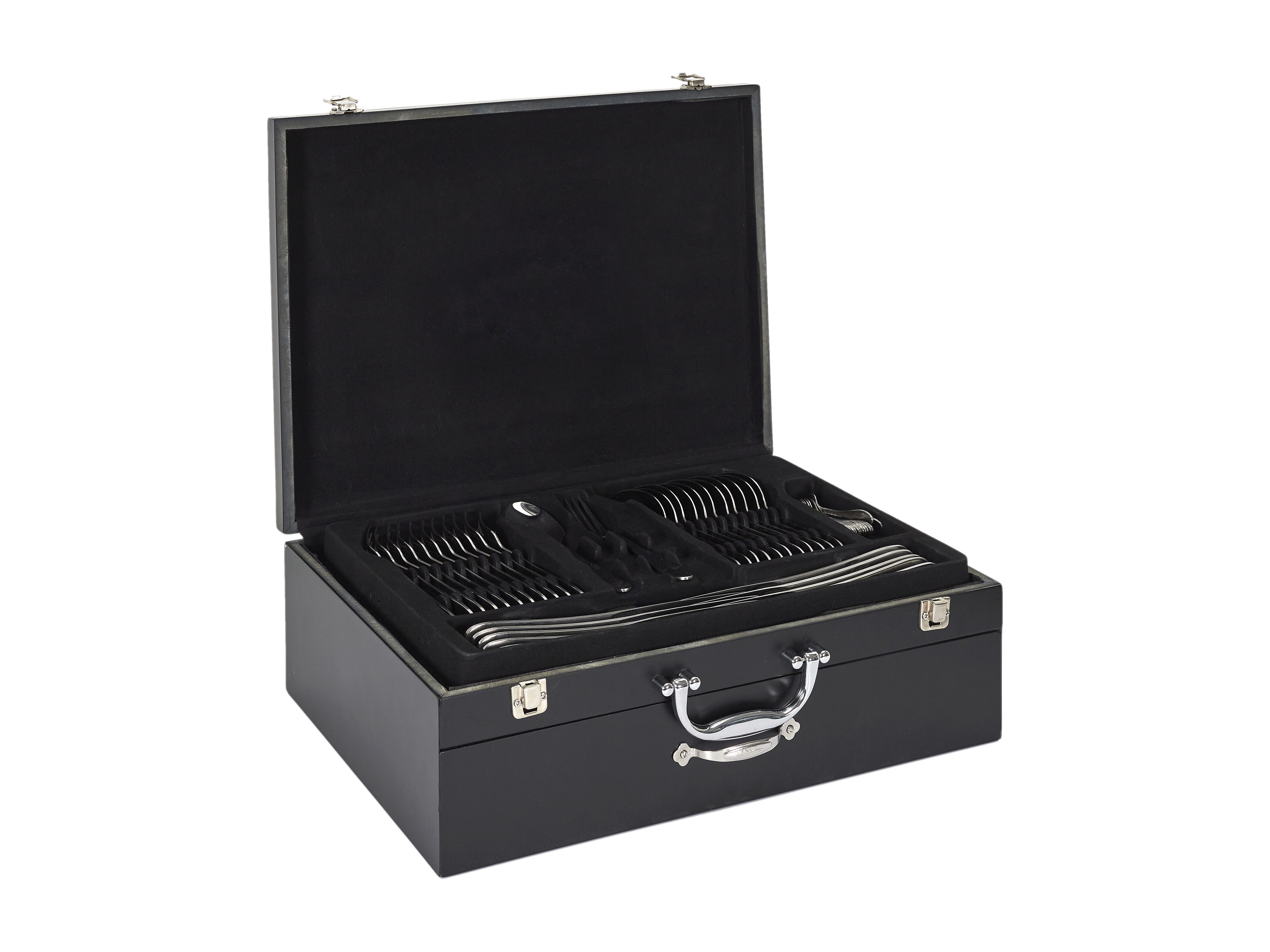 Menagere 84 Pieces Coffret En Bois Avec Tiroir Noir