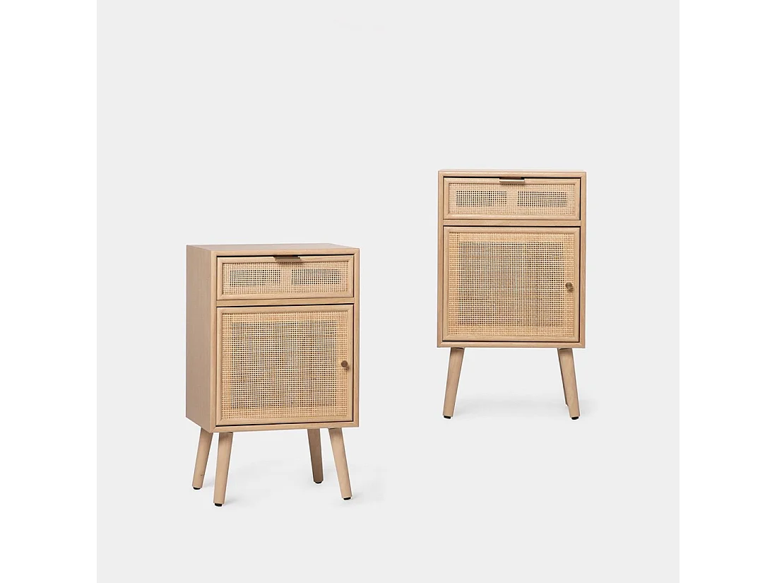 Table de chevet 2 tiroirs en rotin naturel 42x71 cm-Mapi