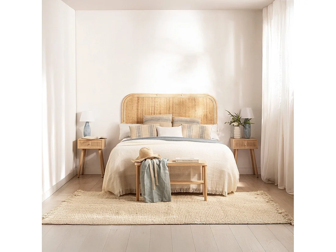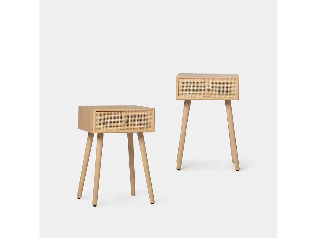 Table de chevet 2 tiroirs en rotin naturel 42x71 cm-Mapi