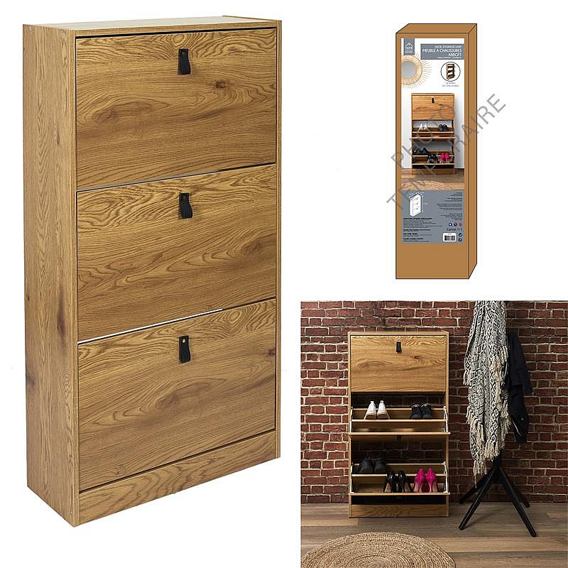 Meuble Chaussures Chêne 2 Abattants 1 Tiroir 24 Paires L 82.4 H 102.9 P 41 cm