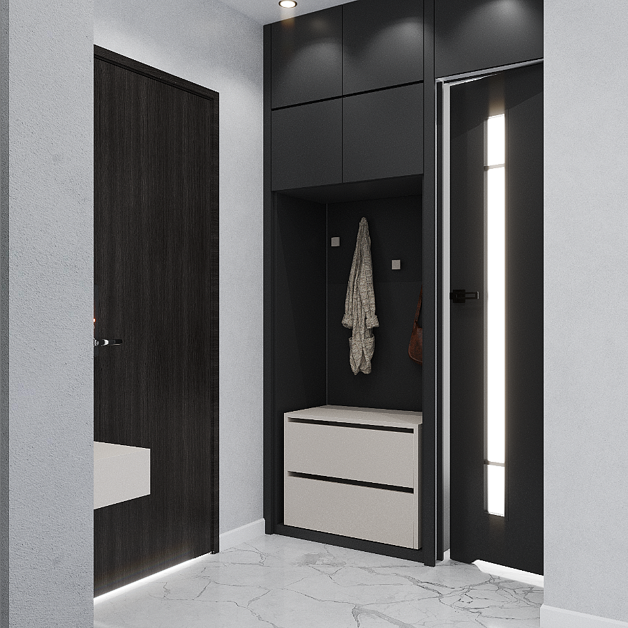 Meuble à chaussures - 3 portes - grège - pieds noirs - 50x30x125 cm - VELDIO