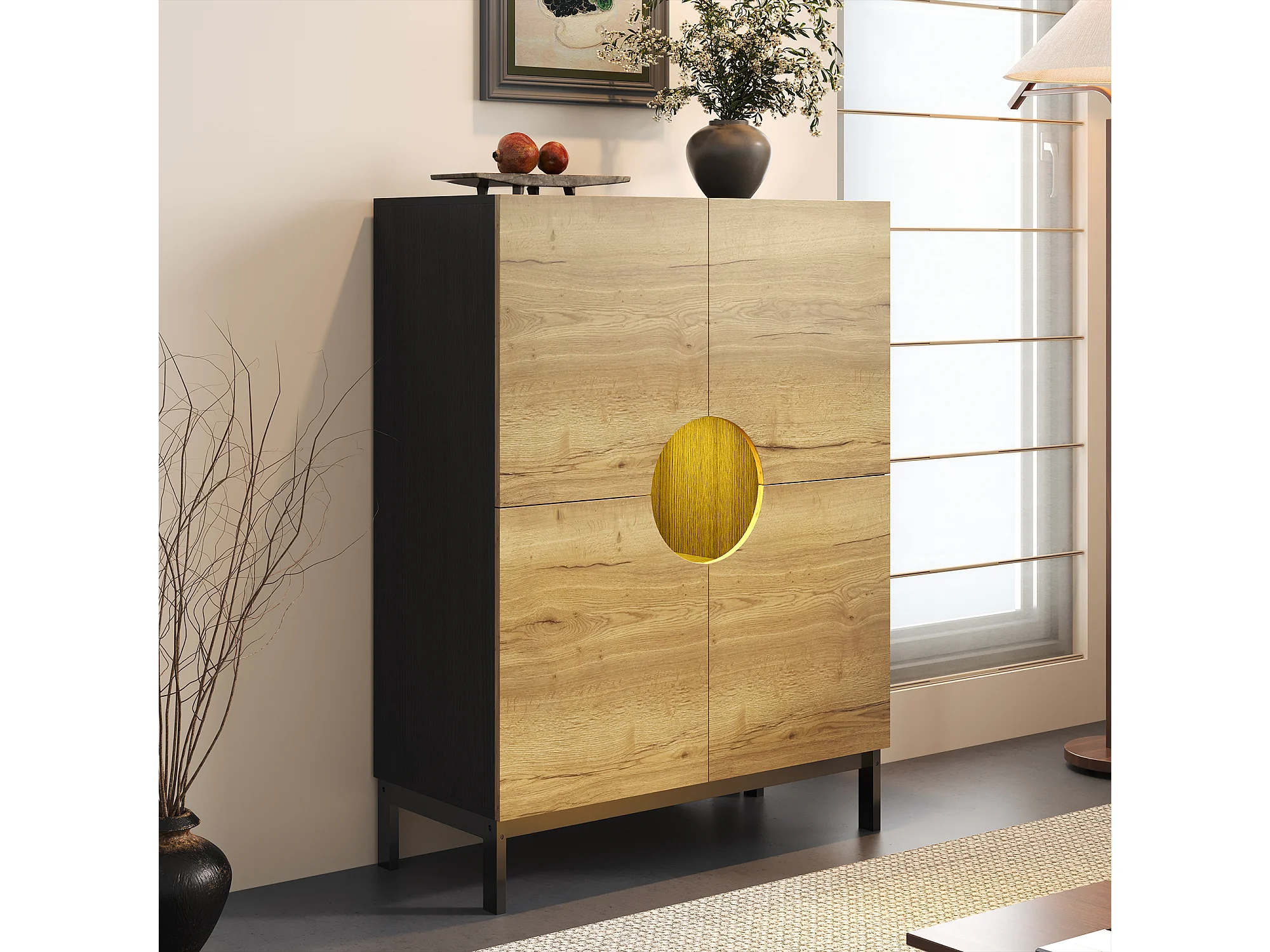 Meuble à chaussures 90x40x120cm - avec 4 portes - avec éclairage LED - pieds en bois massif - naturel