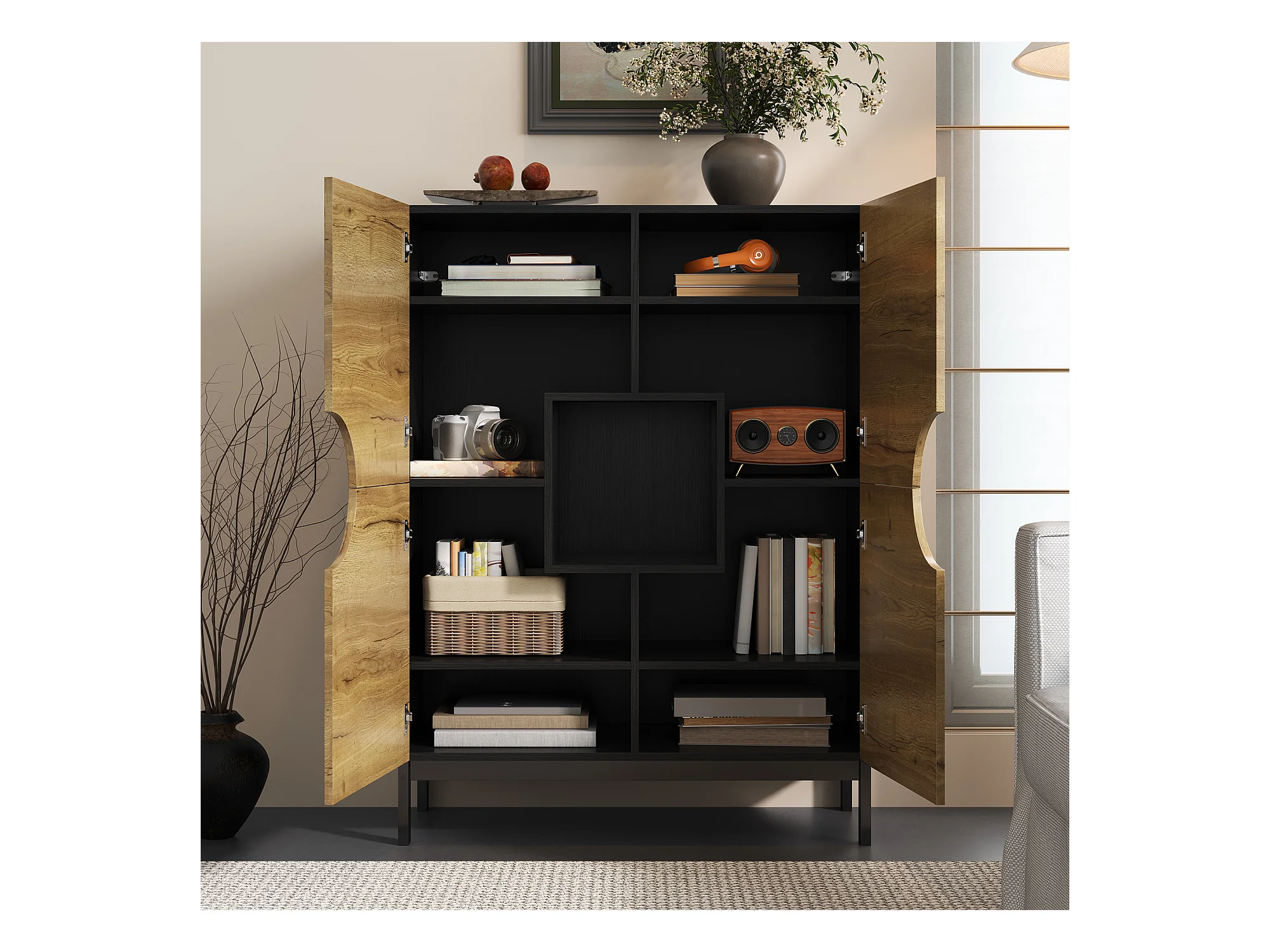 Meuble à chaussures 60x32x94 cm - 2 portes - avec 3 étagères - Pieds en métal - Naturel