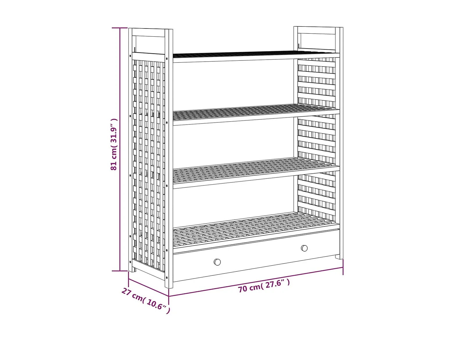 Meuble à chaussures avec tiroir 70x27x81cm Bois massif de noyer
