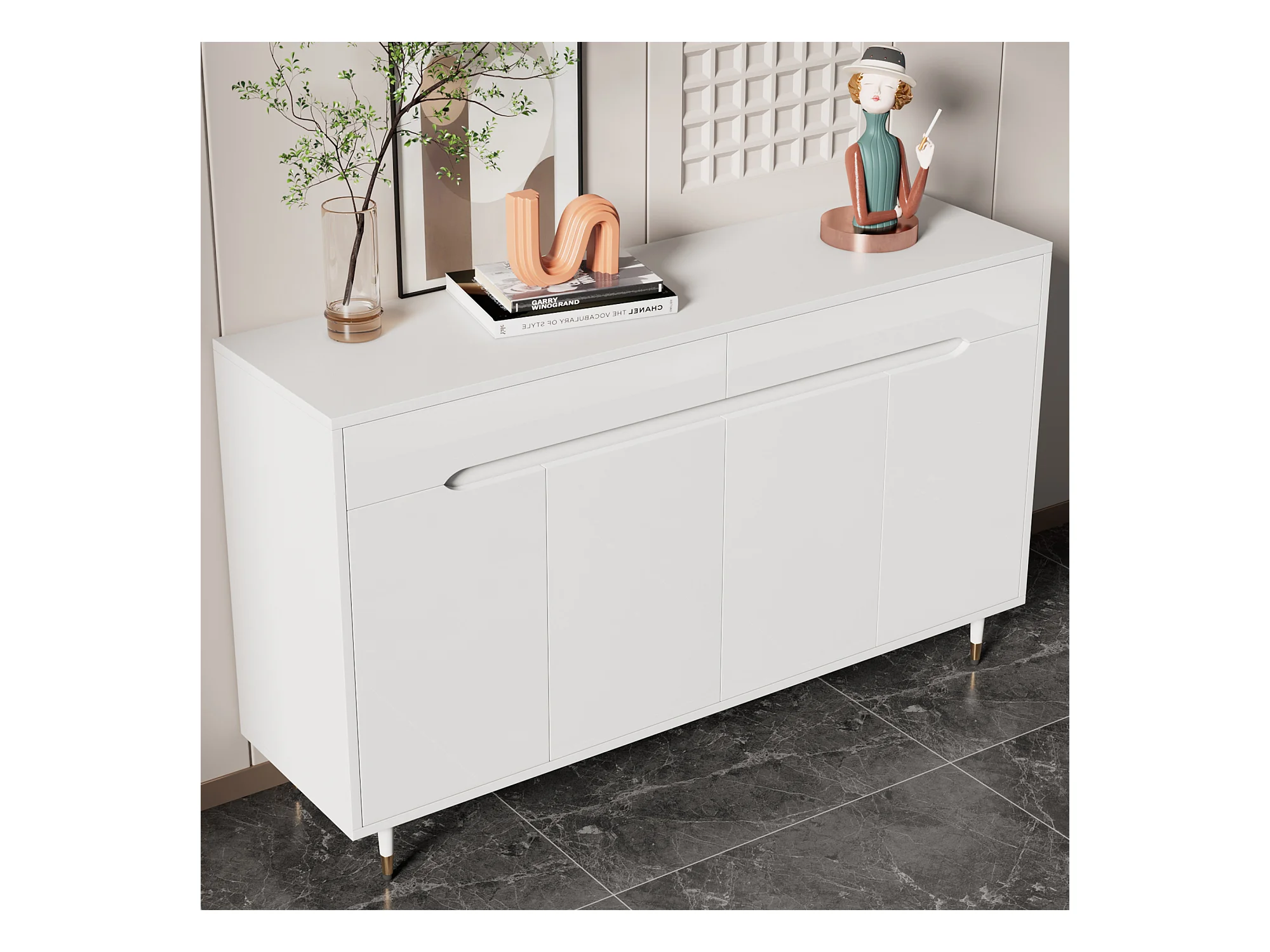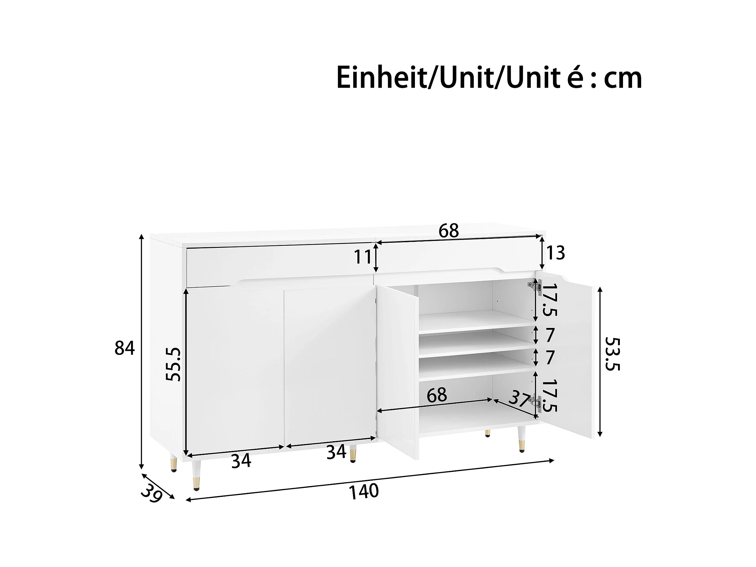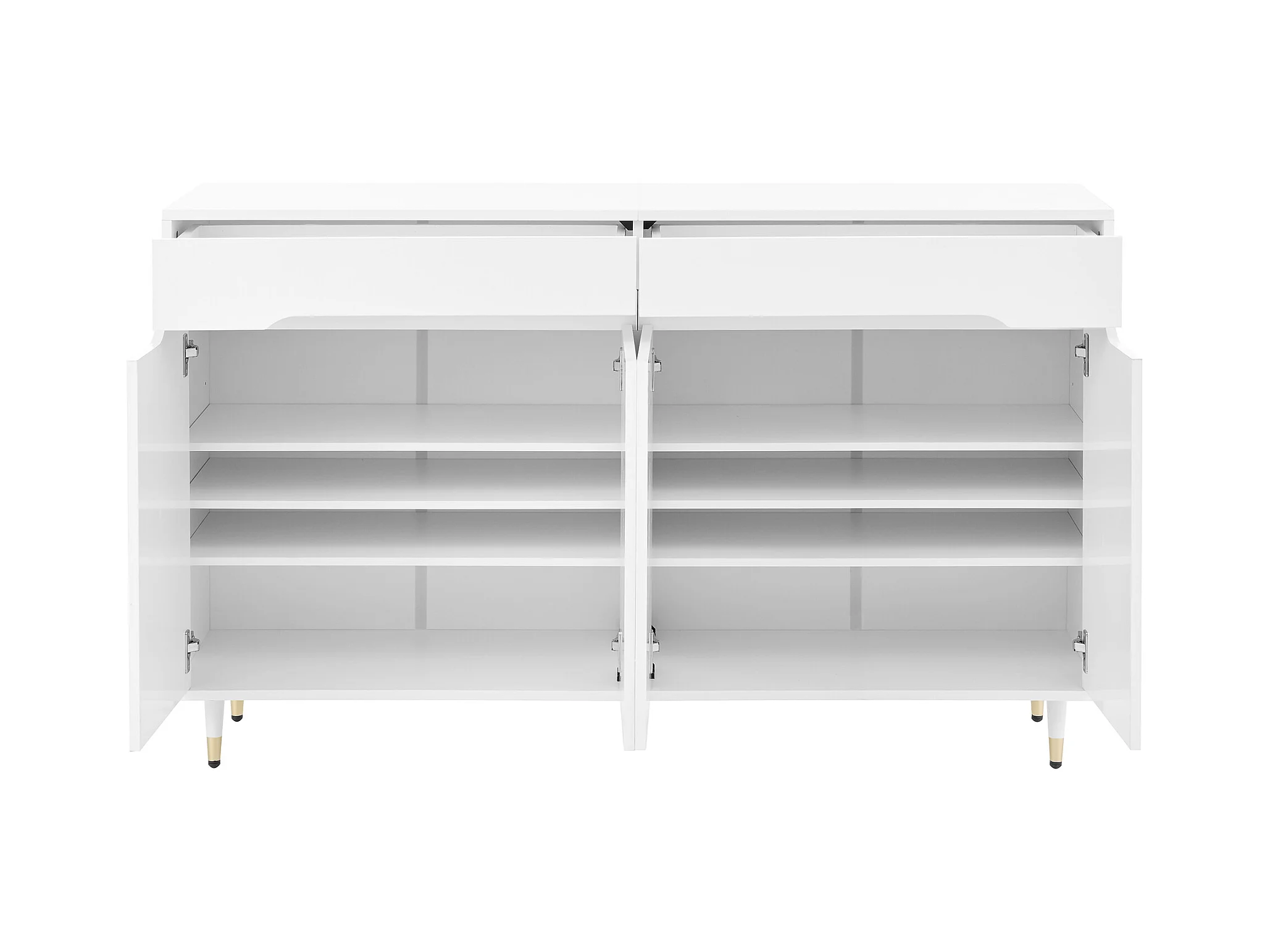 Meuble à chaussures blanc avec 4 portes et 2 tiroirs, étagères réglables
