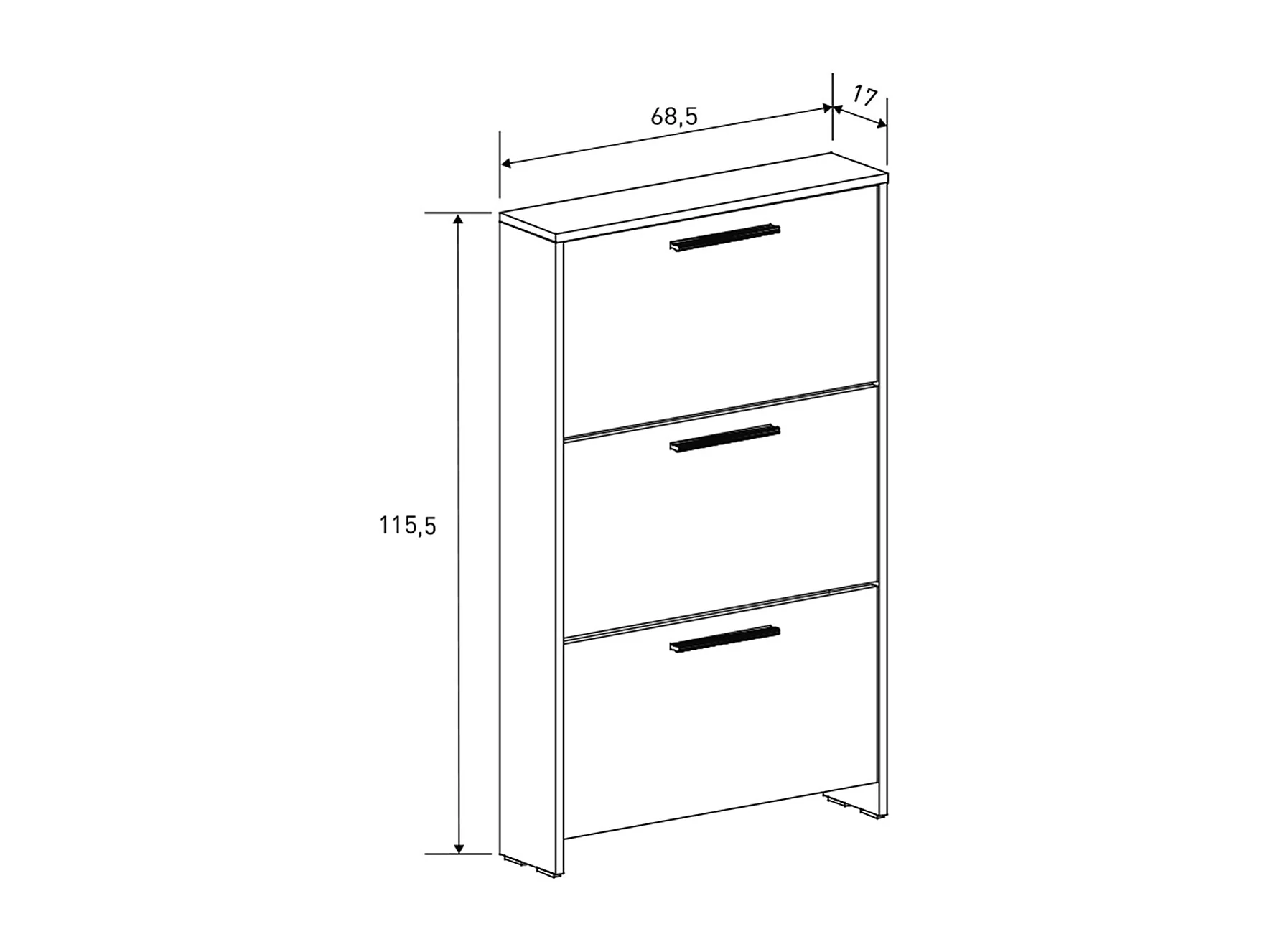 Meuble à chaussures, commode à chaussures à 3 portes coloris chêne Mauvella - Longueur 68,50 x profondeur 17 x hauteur 115,50 cm