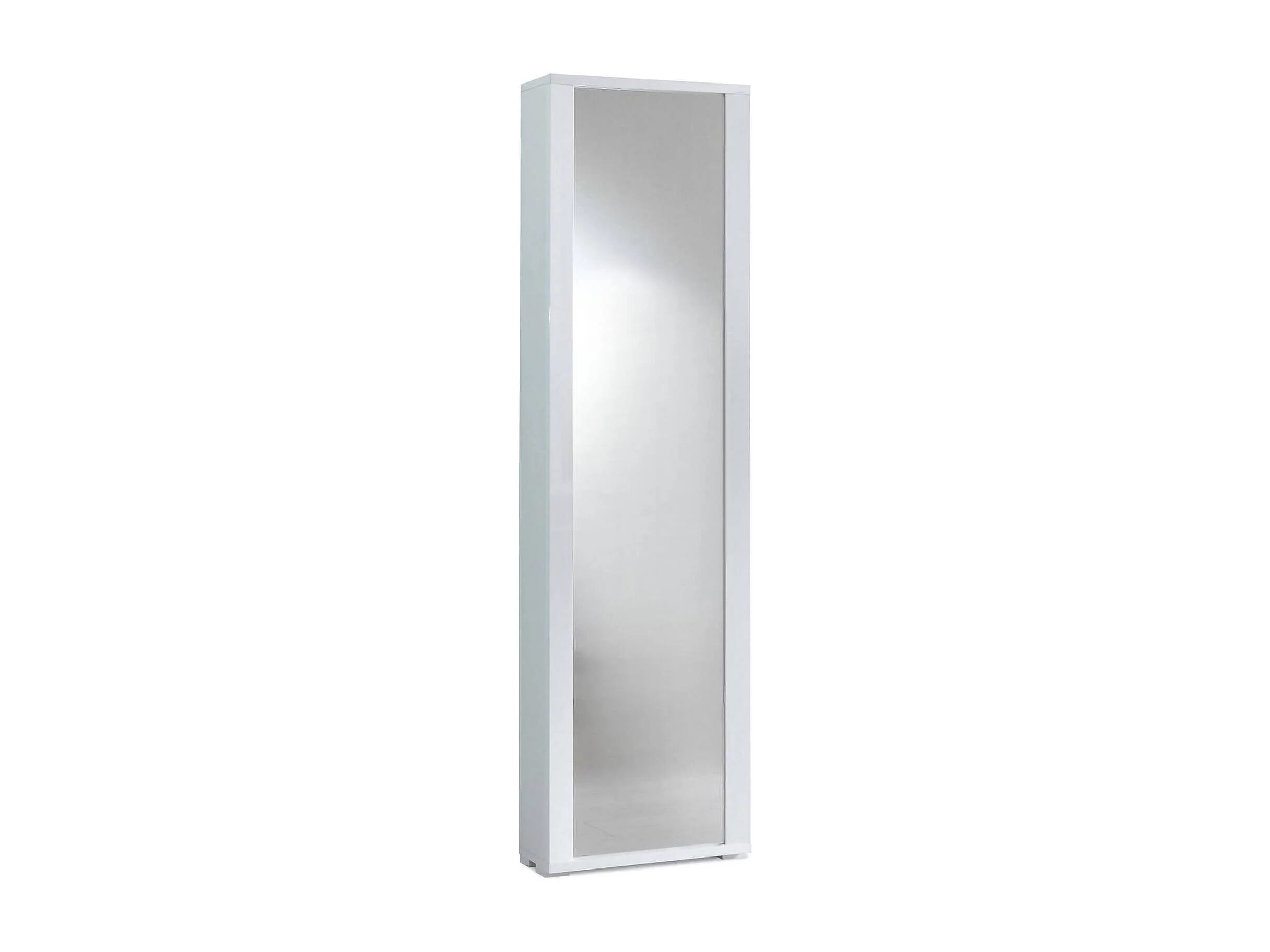 Étagère à chaussures Dcandel, Meuble d'entrée polyvalent avec porte miroir, Meuble à chaussures moderne avec 7 étagères, 100% Made in Italy, 50x32hx182 cm, Blanc