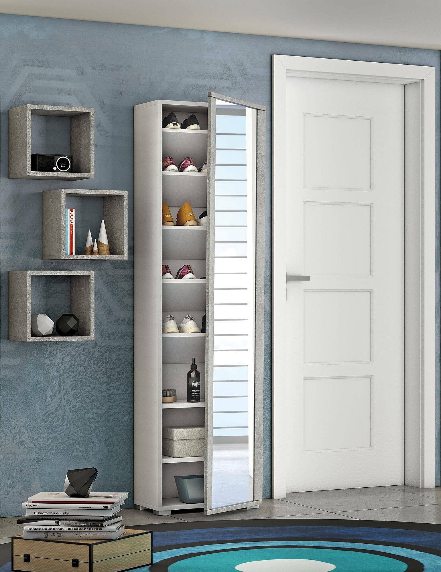 Meuble à chaussures effet bois blanc et béton 50x32h cm