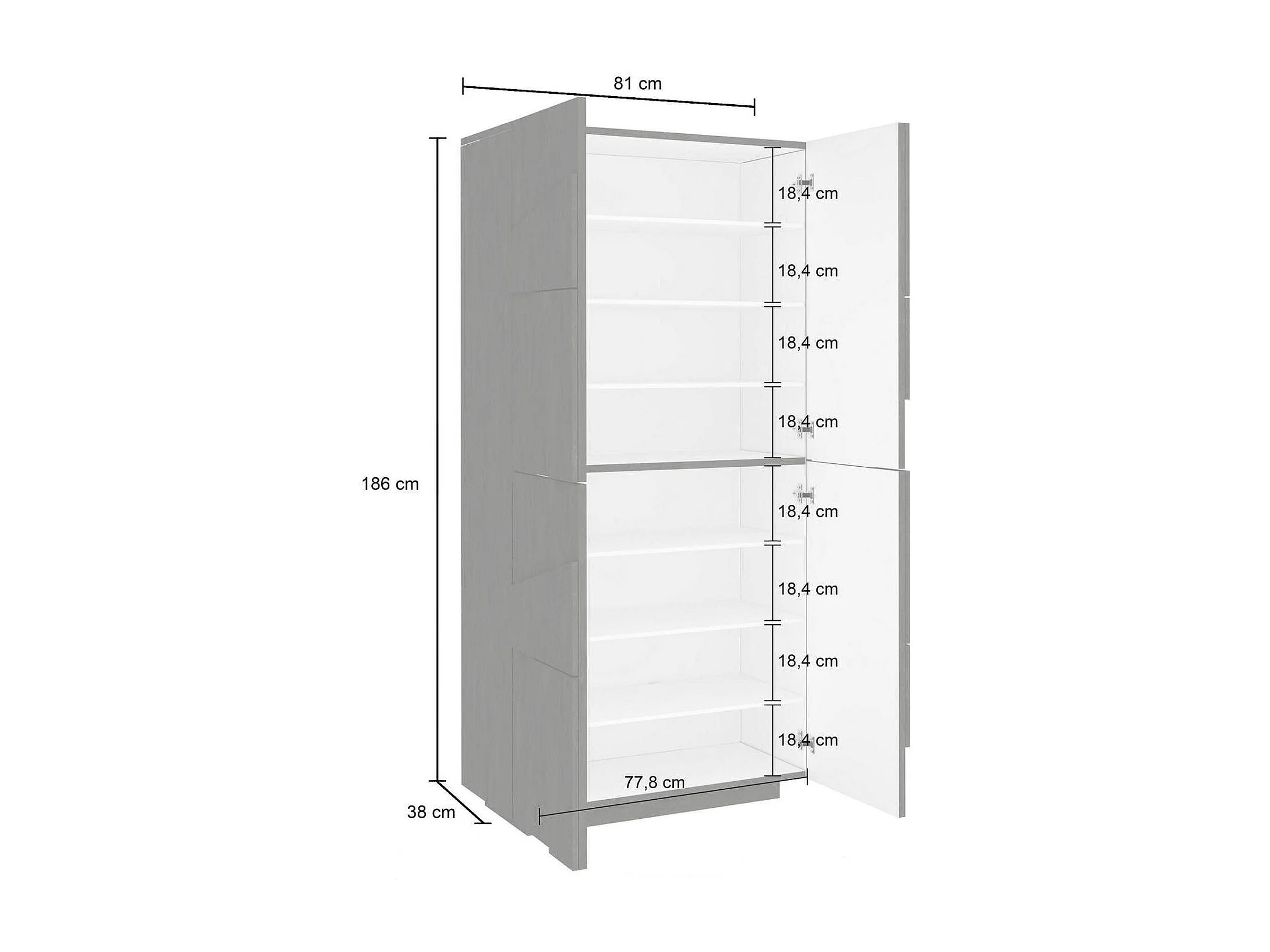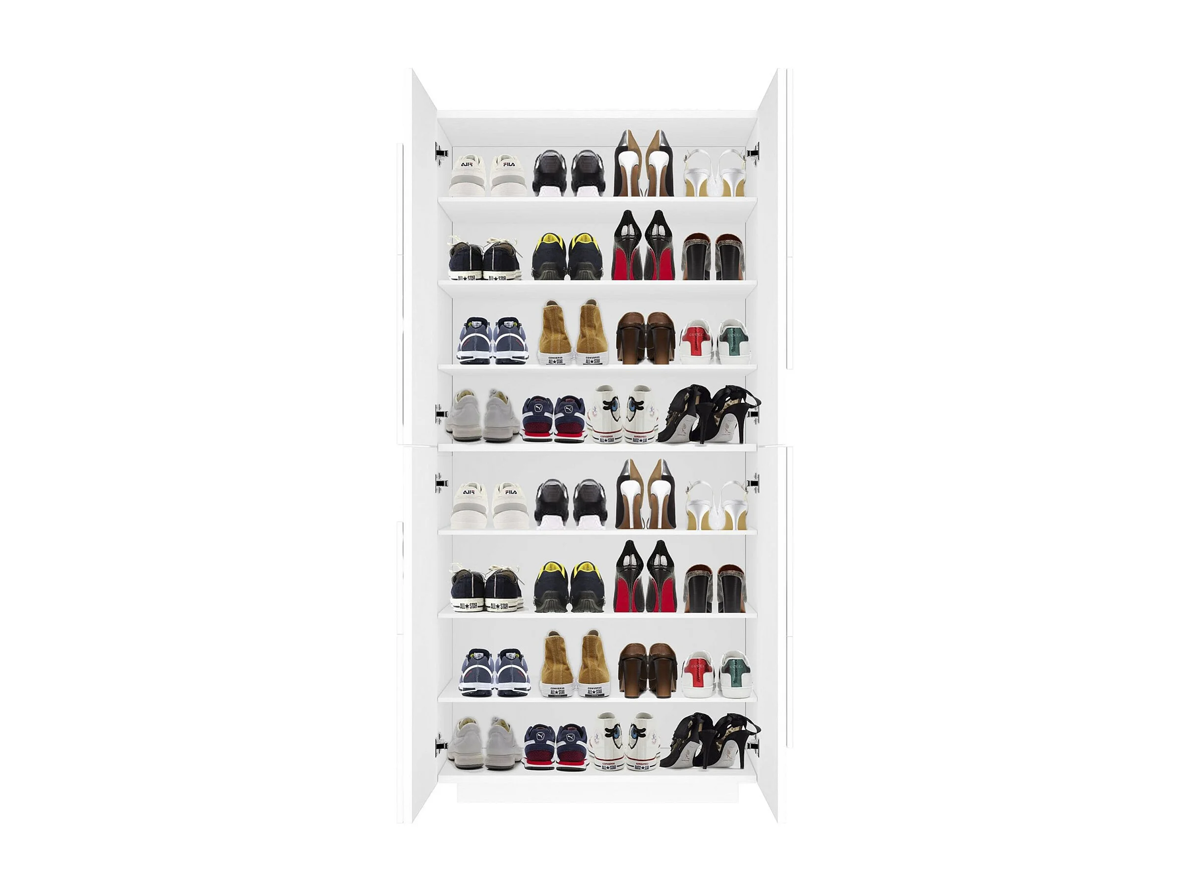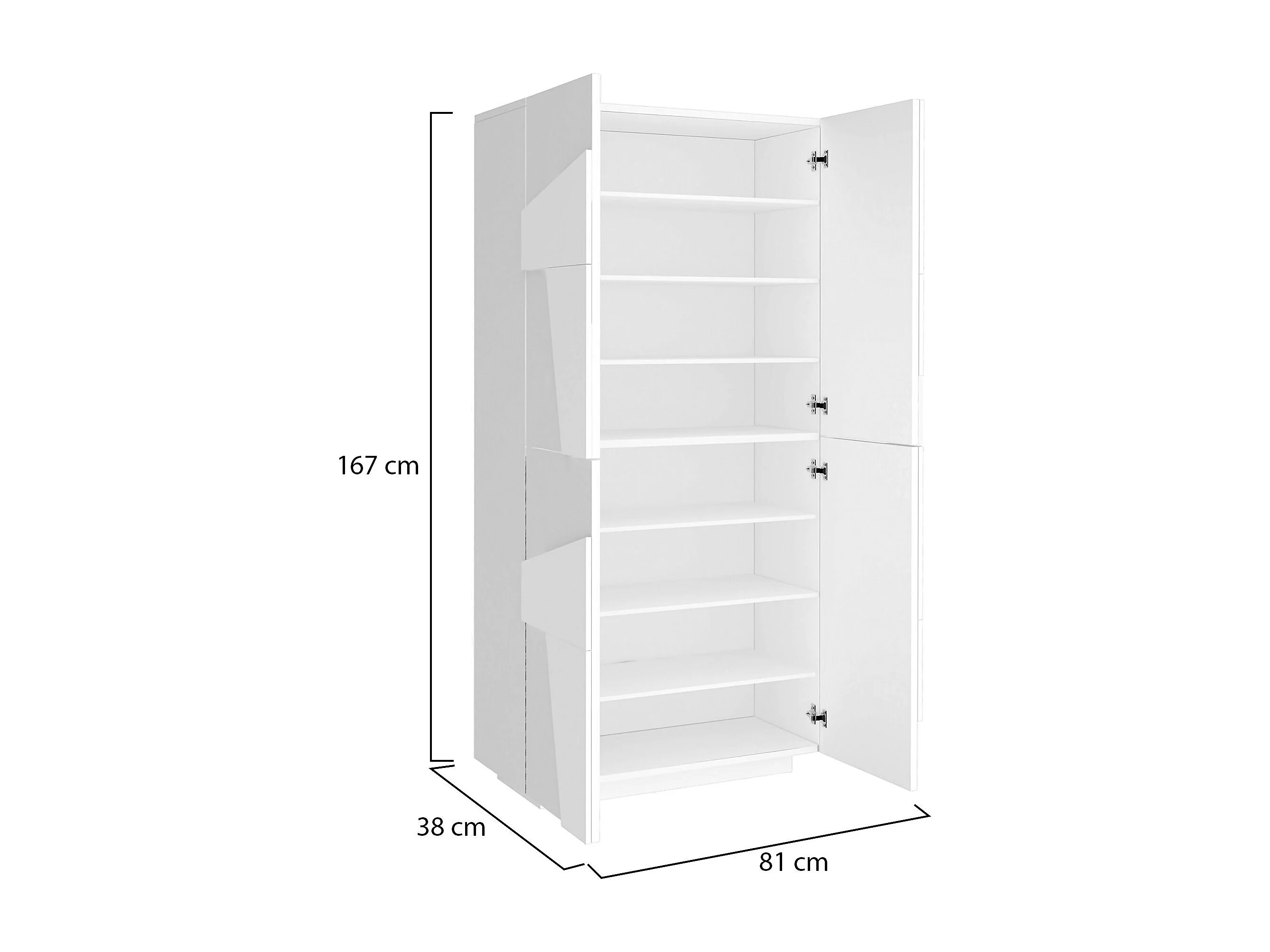 Étagère à chaussures Dlerd, Armoire polyvalente avec 4 portes battantes, Étagère à chaussures d'entrée, 100% Made in Italy, 81x38h167 cm, Blanc brillant