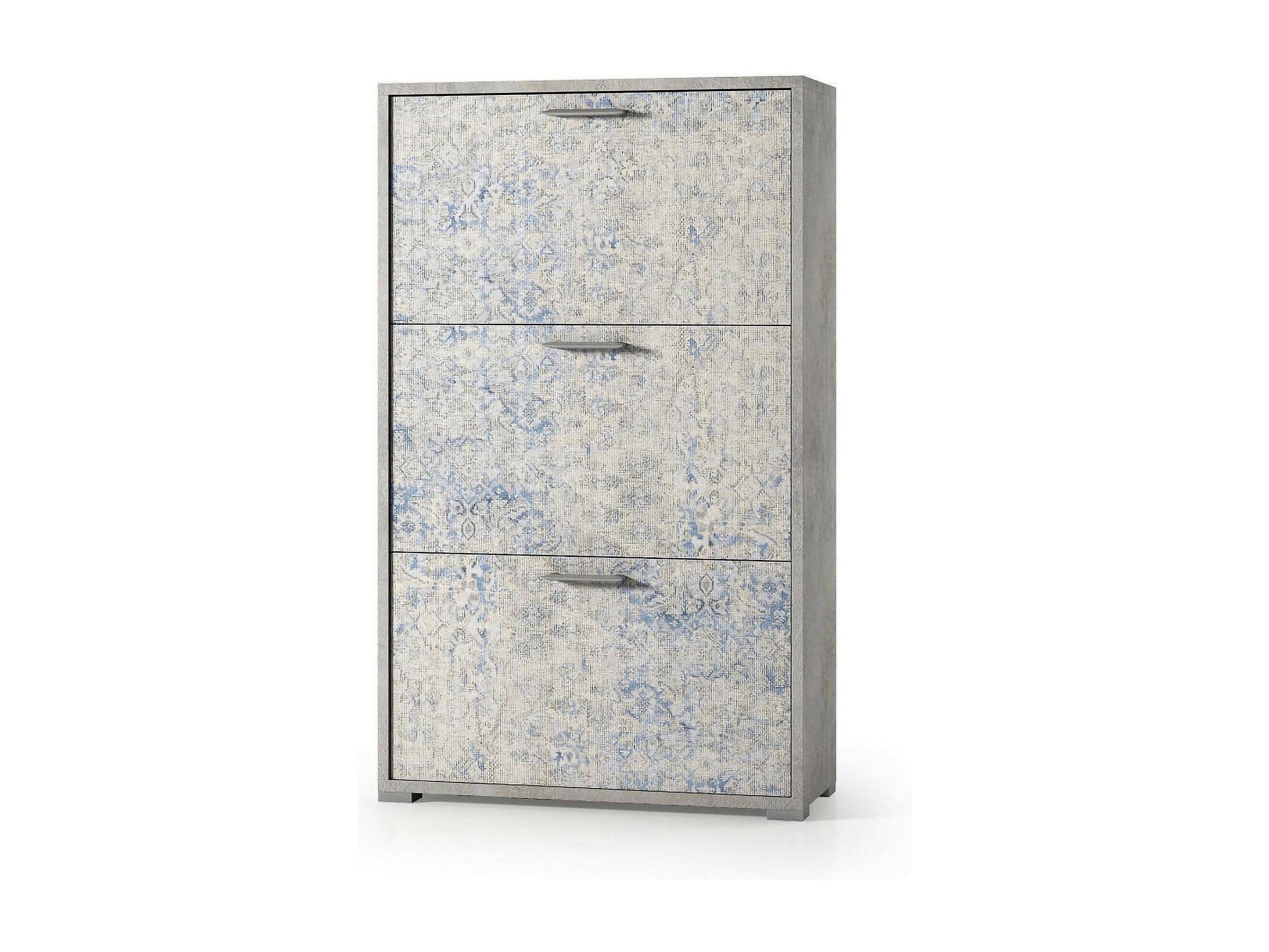 Schuhregal Dlos, Mehrzweck - Eingangsmöbel mit 3 Klapptüren, Schuhschrank mit doppelter Tiefe, 100% Made in Italy, 67x28h112 cm, Beton und Blau