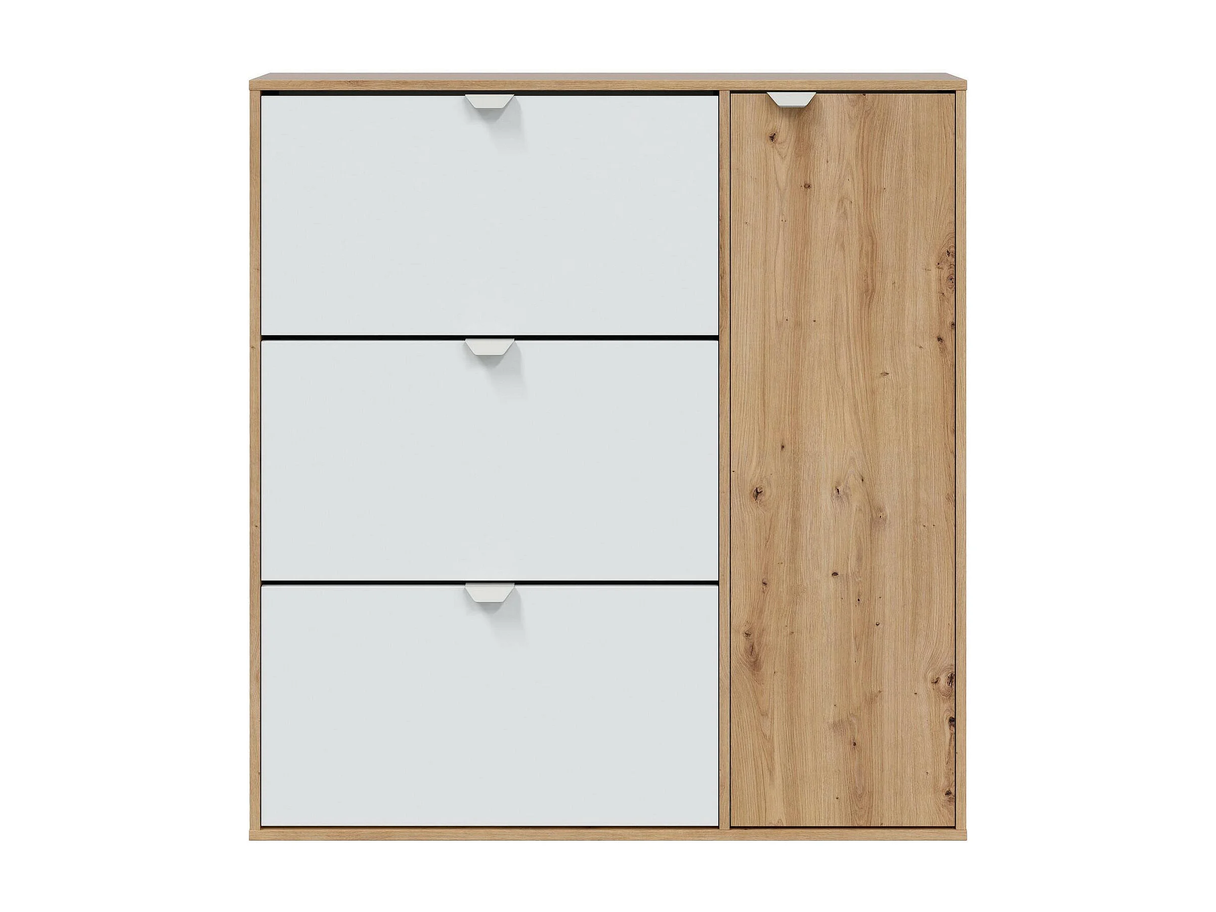 Étagère à chaussures Dmodic, étagère à chaussures d'entrée avec 4 portes, meuble à chaussures peu encombrant, 105x24h112 cm, Blanc et Chêne