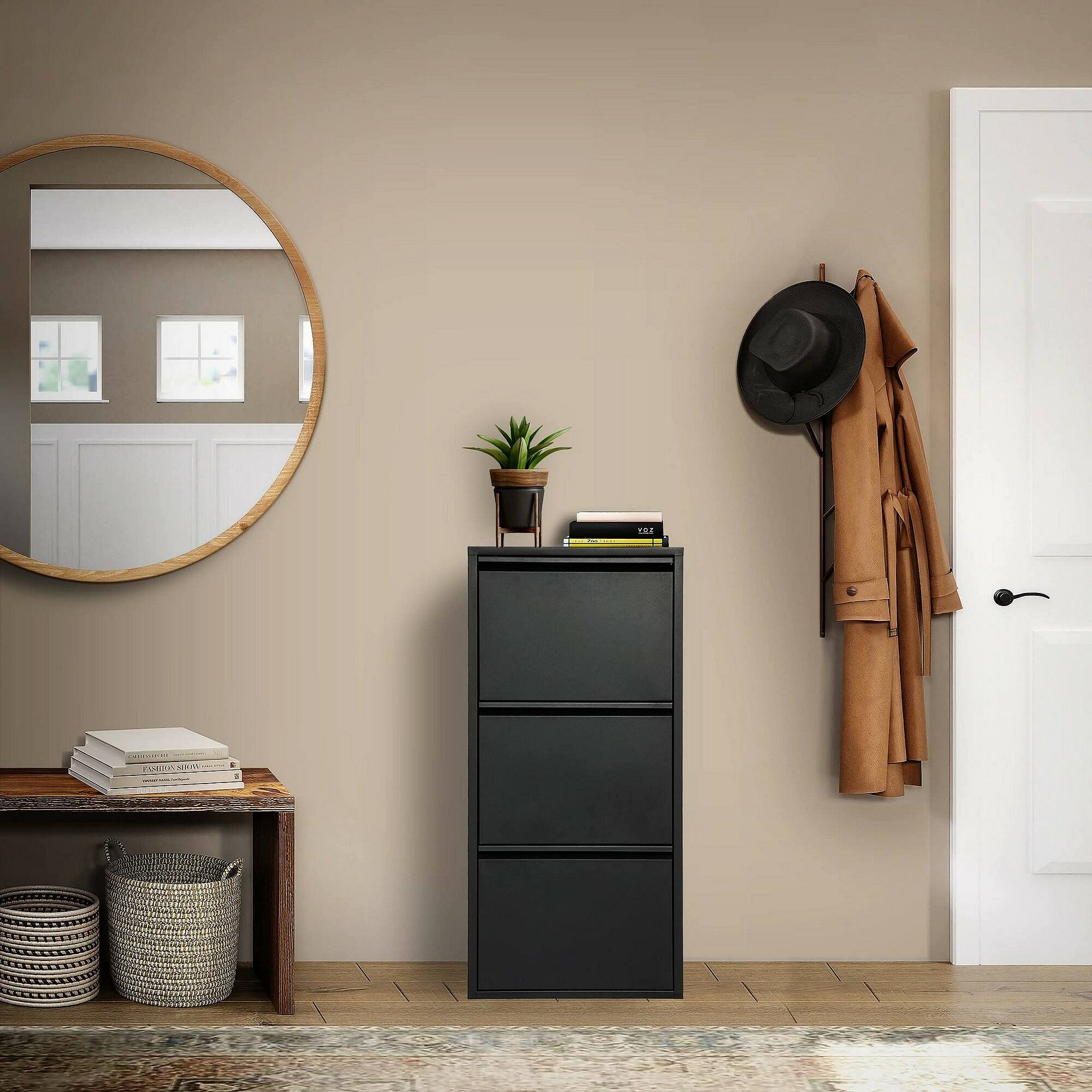 Meuble à chaussures Eliseo, Meuble à chaussures en métal, Armoire d'entrée polyvalente, Rangement pour chaussures, 50x15h104 cm, Noir