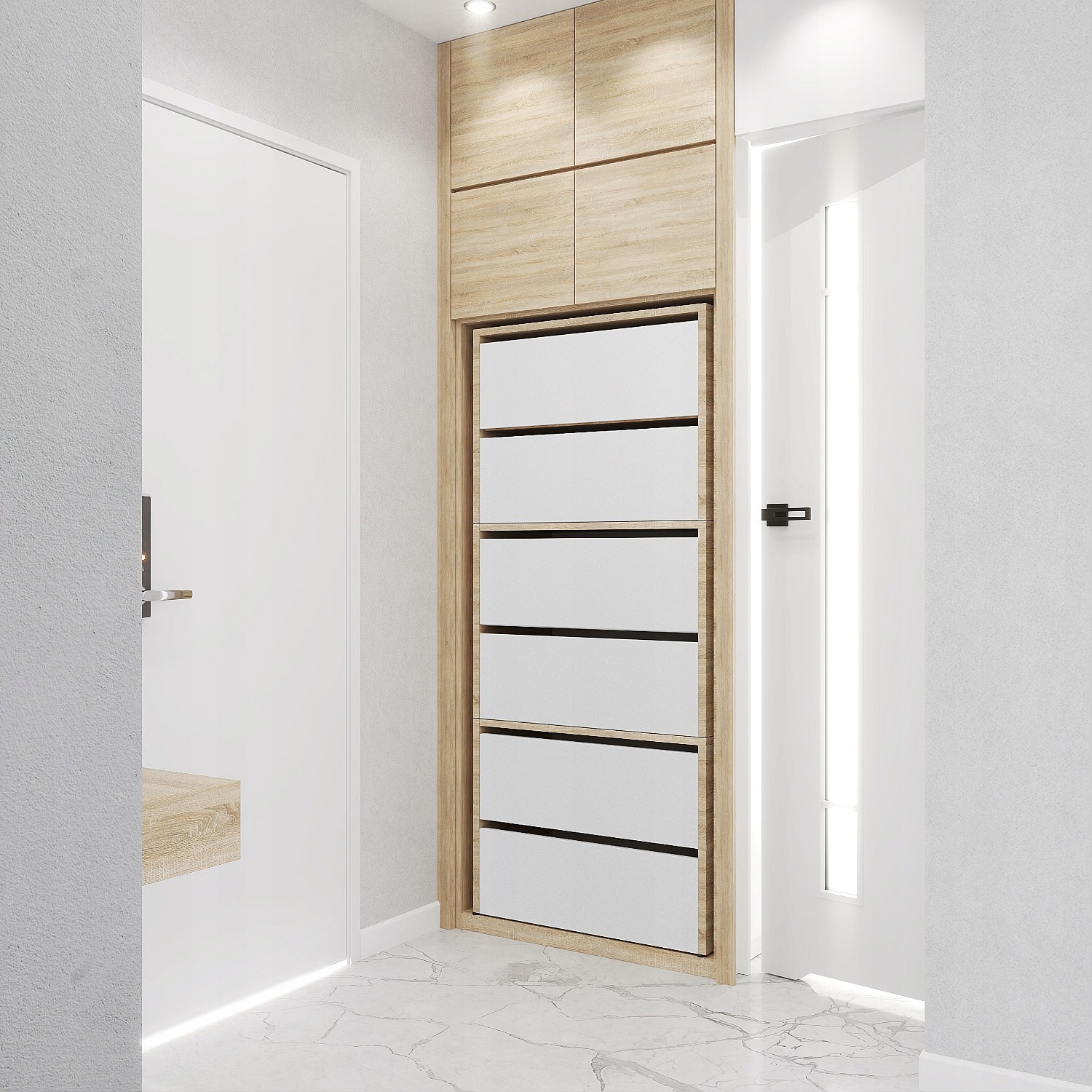 Meuble à Chaussures Étroit Blanc+ Chêne Sonoma 60x36x150cm – Étagère Rangement Entrée