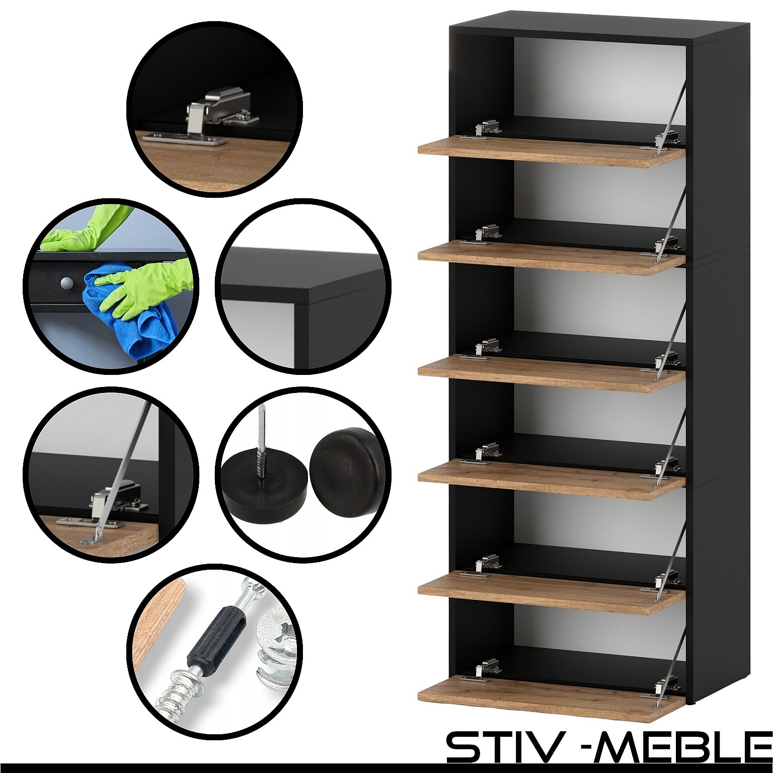 Meuble à Chaussures Étroit Noir Chêne Wotan 60x36x150cm 15 paires – Étagère Rangement Entrée