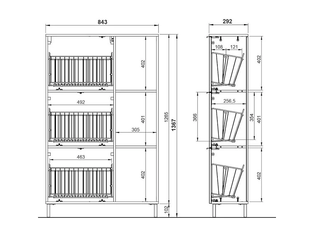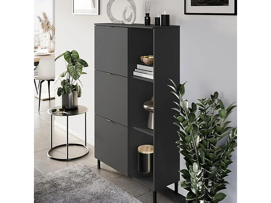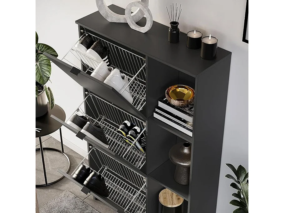 Meuble à chaussures haut - 3 paniers métal - couleur graphite Sarena