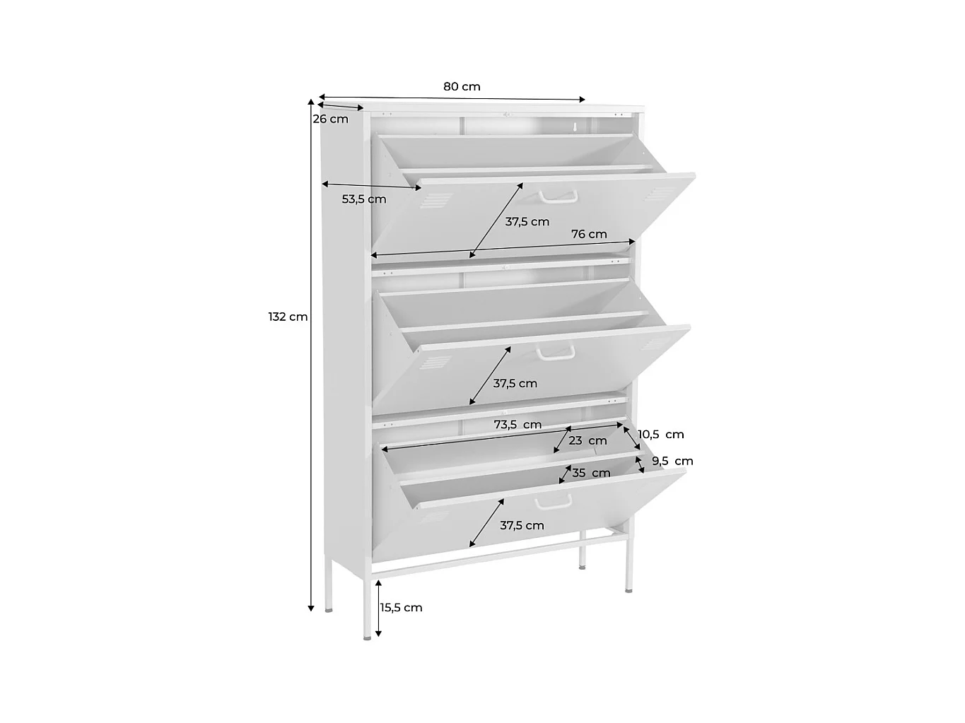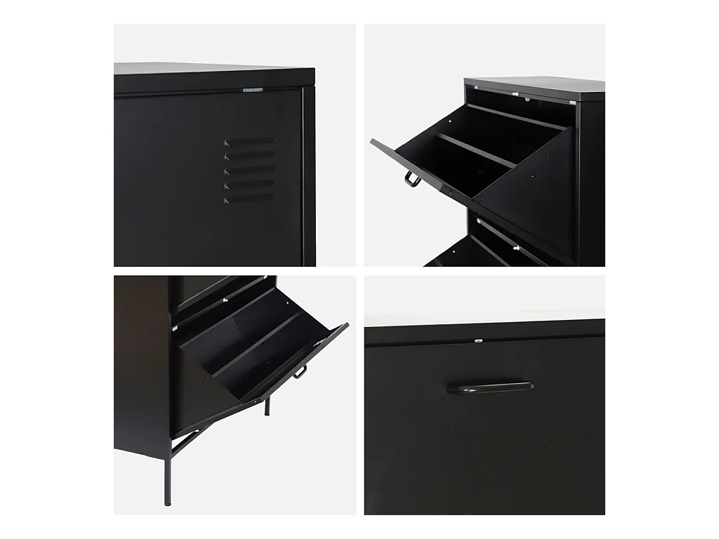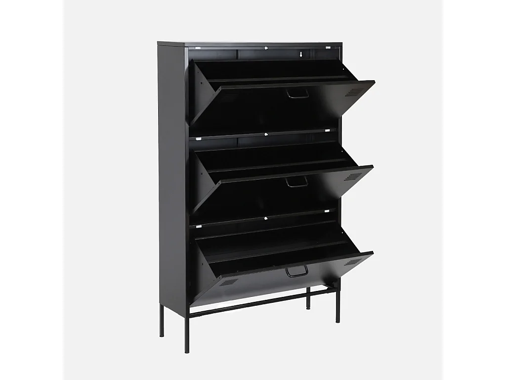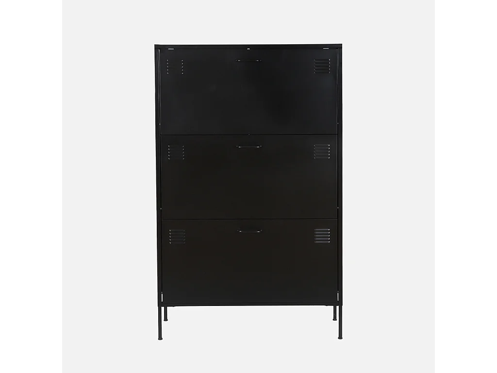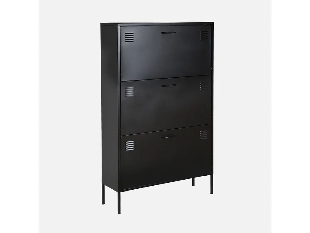 Meuble à chaussures industriel métal noir 3 tiroirs - 80 x 29 x 132.5 cm - Alabama