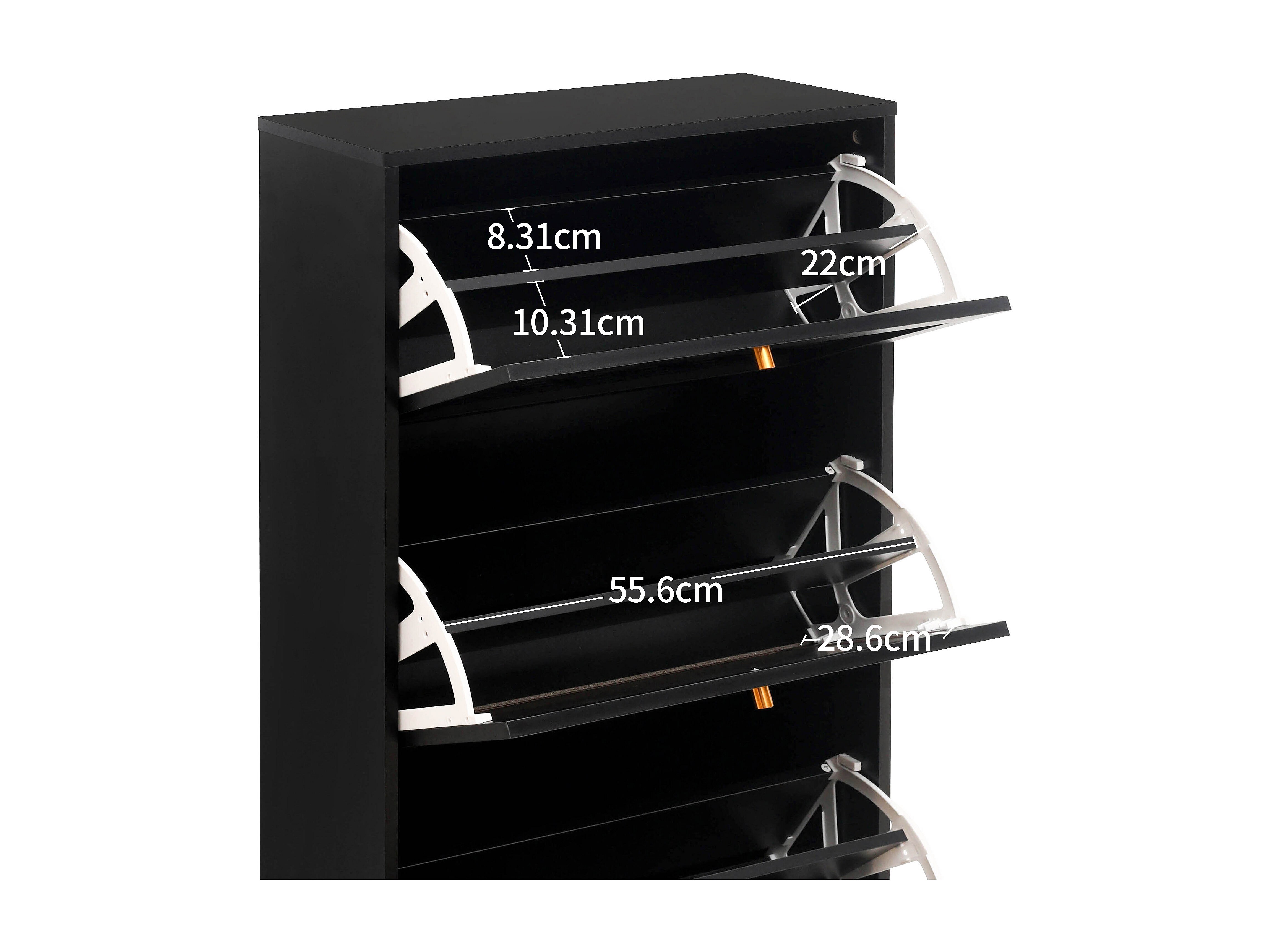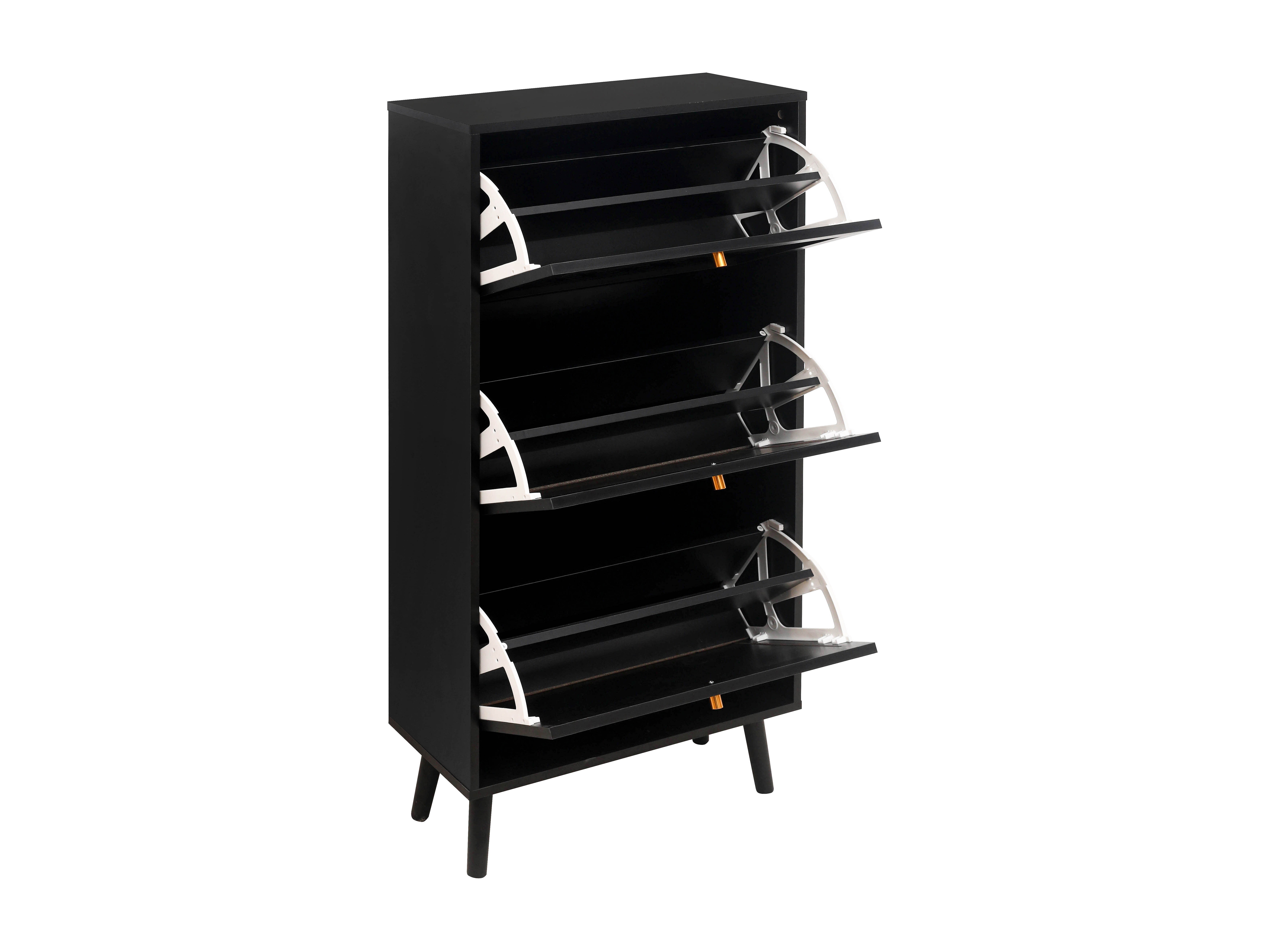 Pisa Armoire à chaussures à 3 rabats/portes en métal noir. Livré entièrement monté.