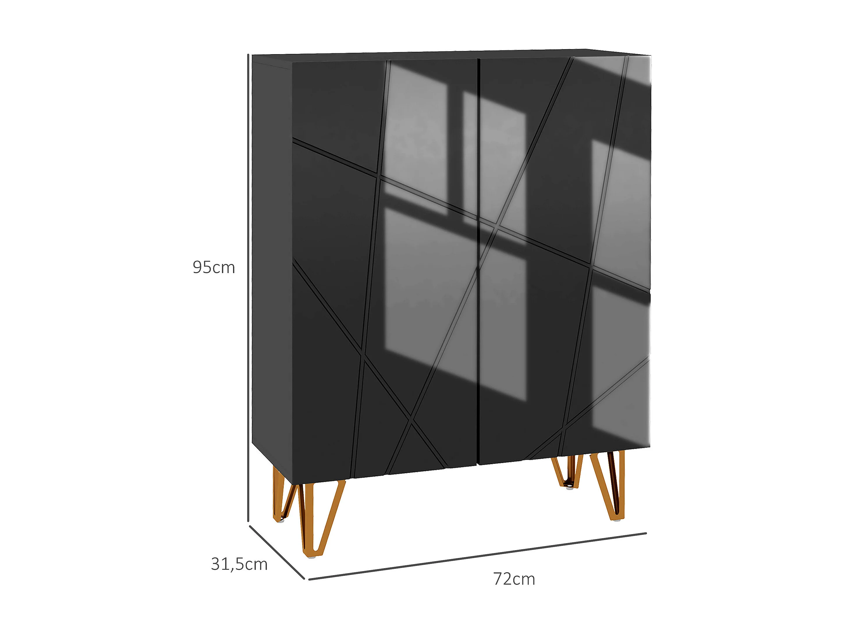 Meuble à chaussures style art déco 2 portes 3 étagères réglables niche acier doré panneaux noir