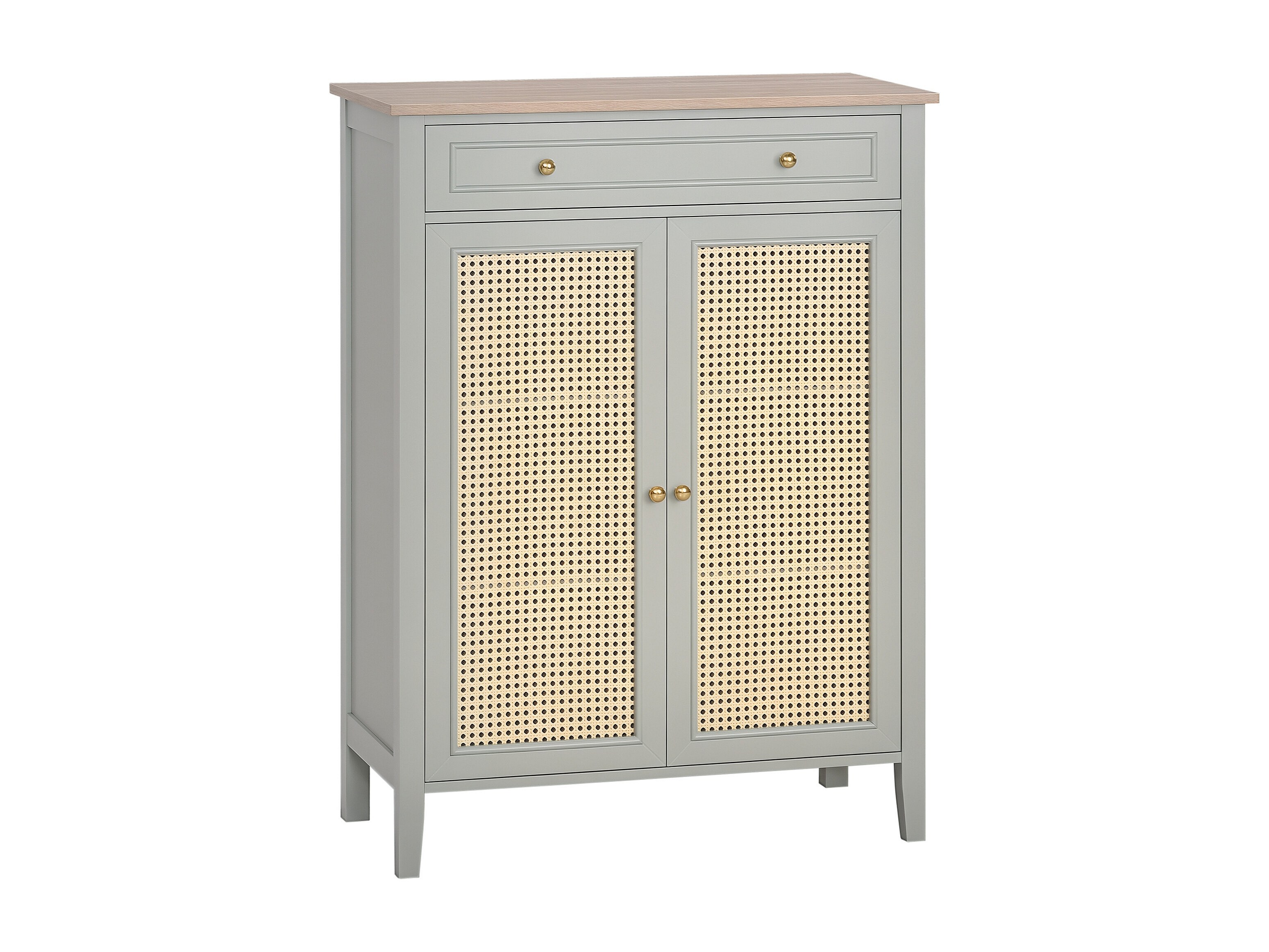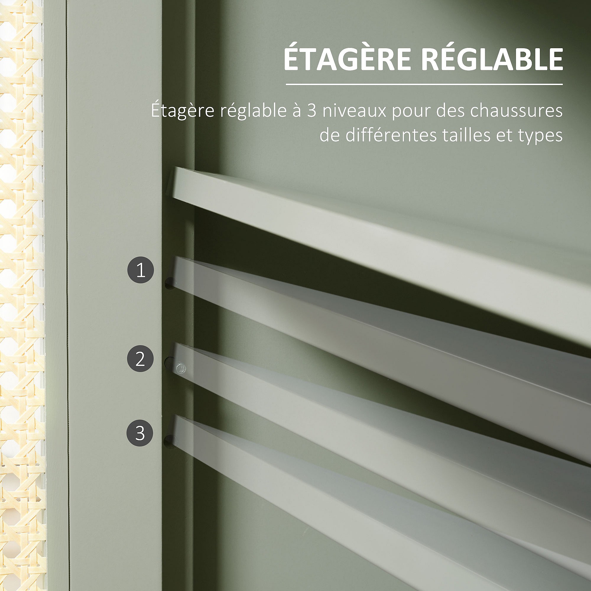 Meuble à chaussures moderne avec portes et tiroir, armoire à chaussures en rotin vert menthe avec étagère réglable