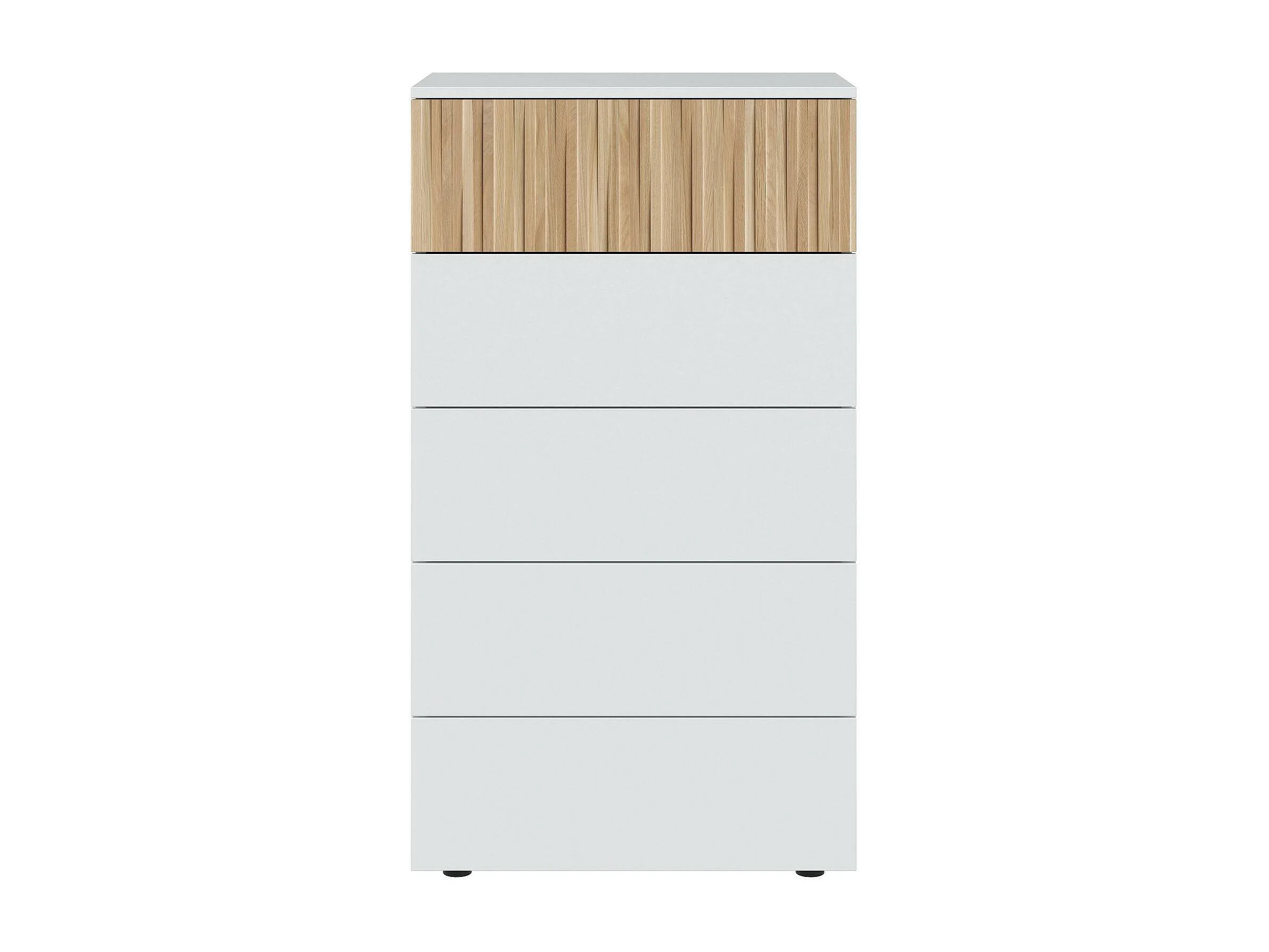 Commode Wynne, commode à 5 tiroirs, commode pour la chambre, commode moderne, 61x40h109 cm, blanc et chêne