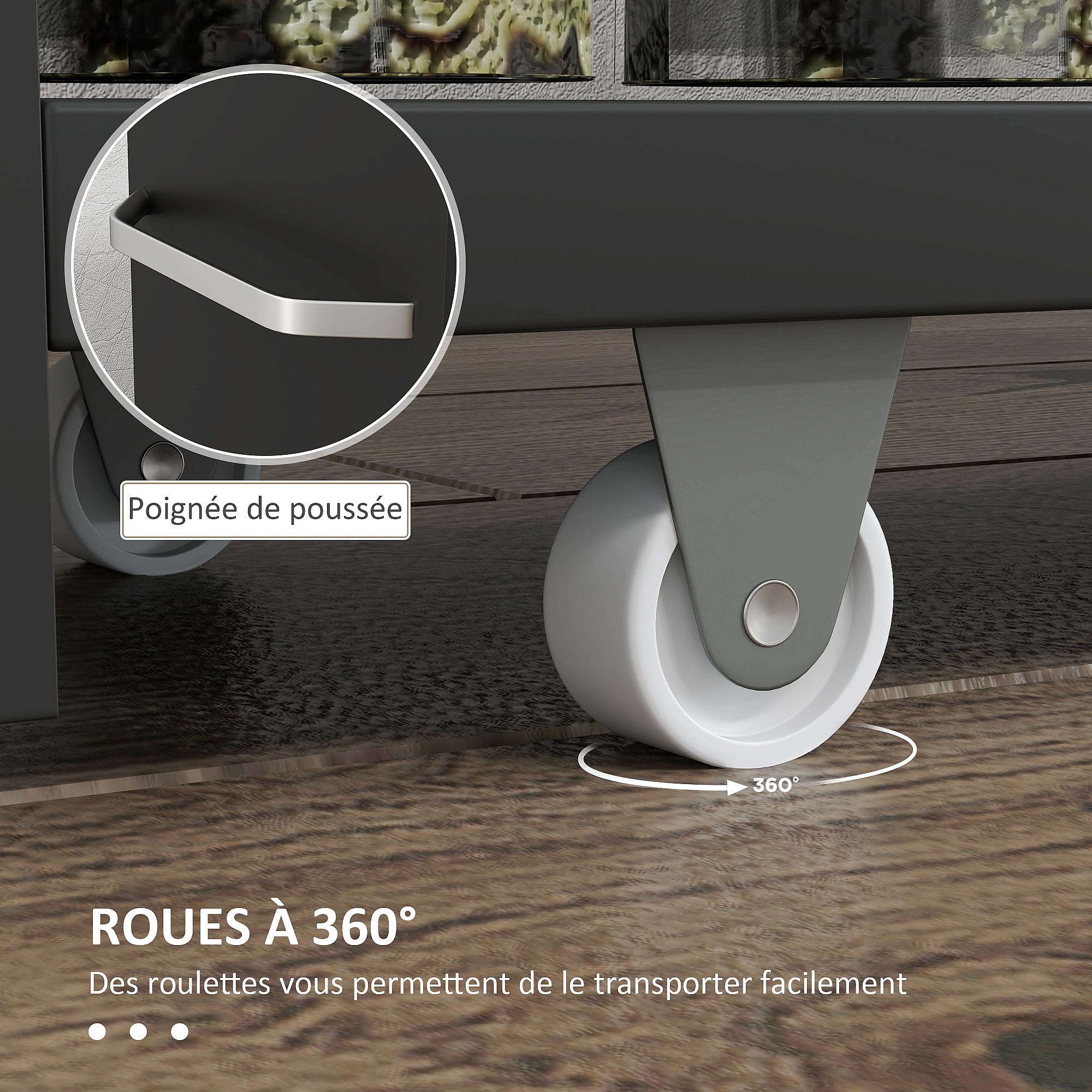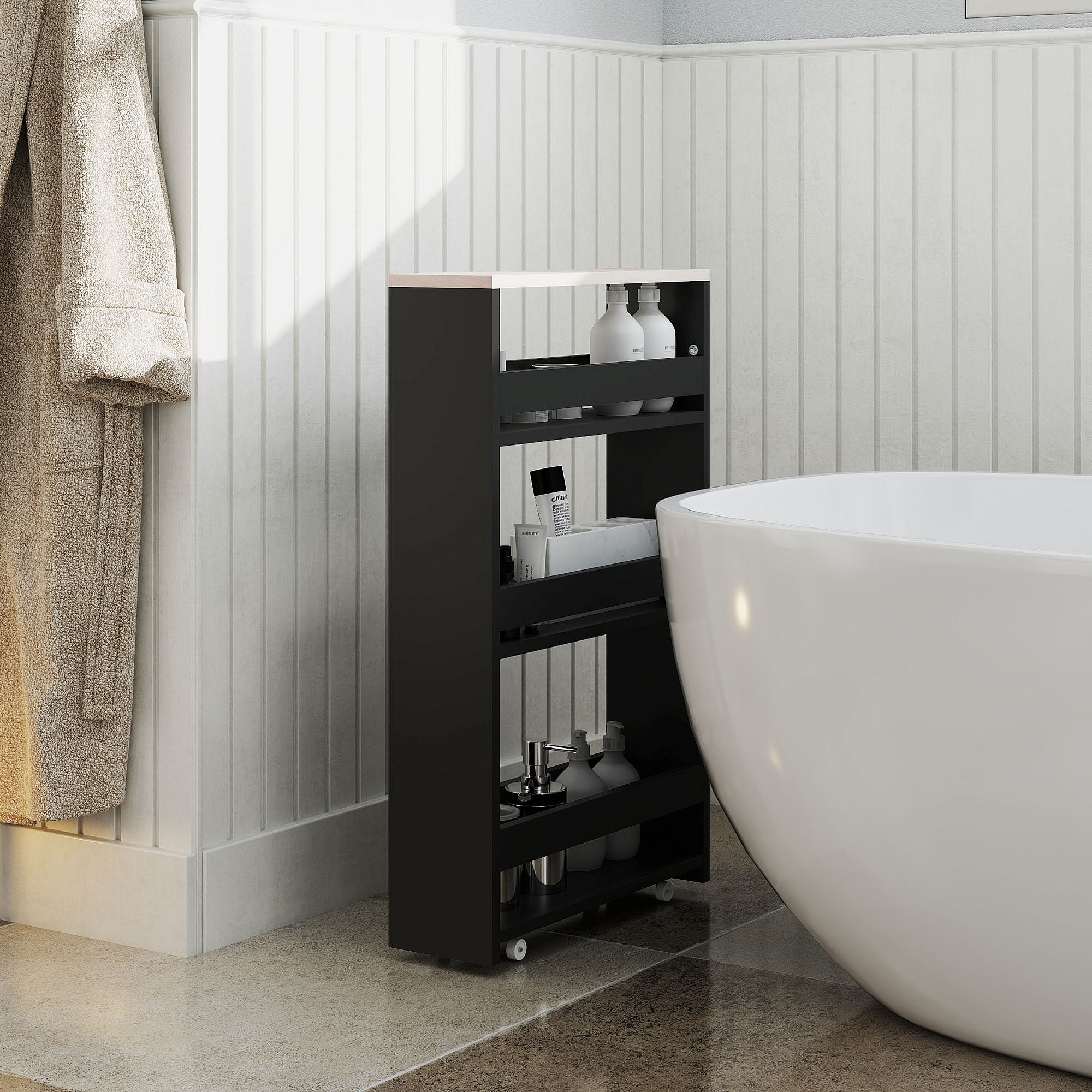 Meuble bas colonne rangement salle de bain à roulettes 3 niveaux dim. 48L x 15l x 80H cm MDF panneaux noir aspect chêne clair