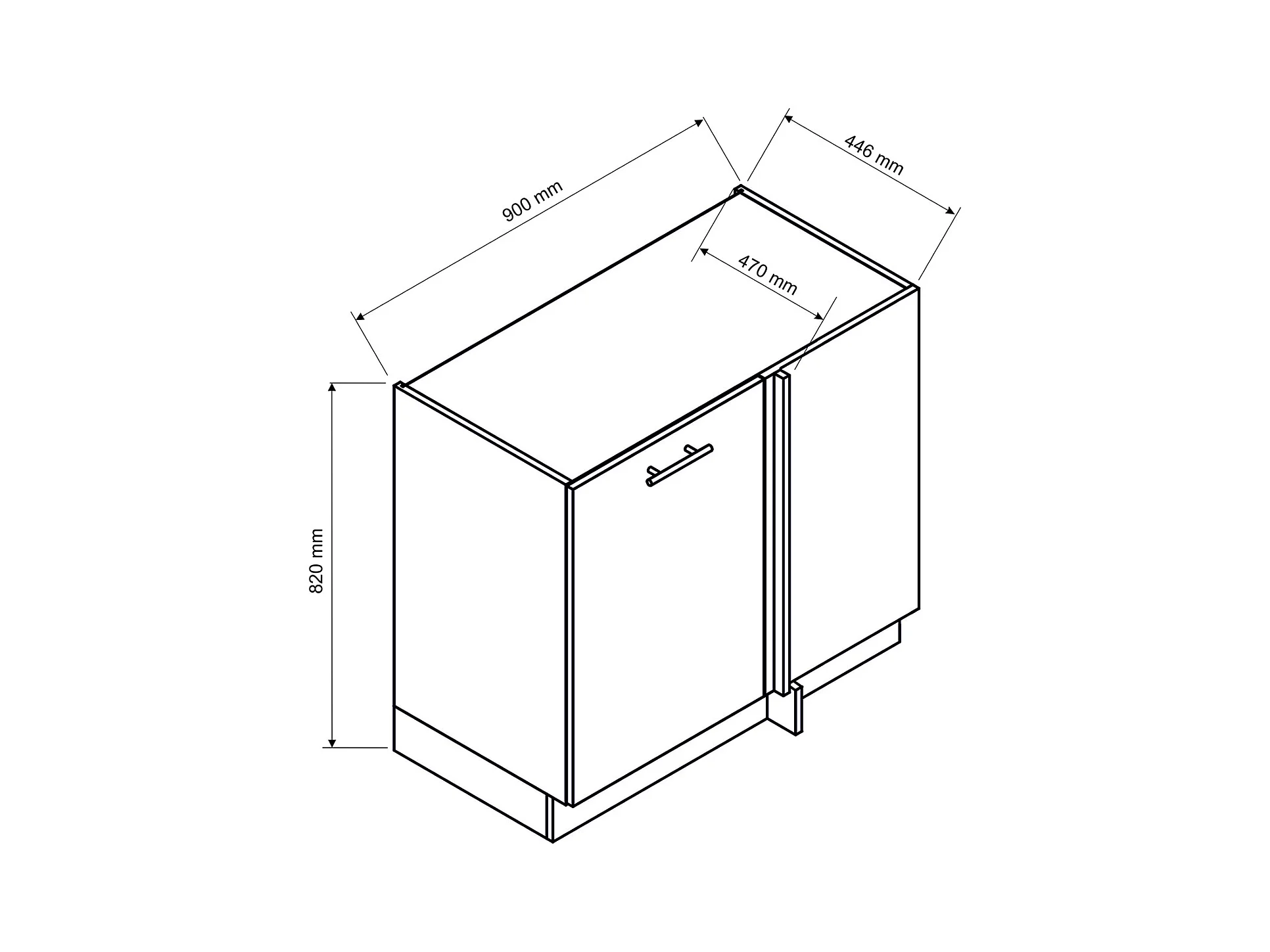 Meuble bas d'angle de cuisine avec 1 porte coloris blanc - longueur 90 x profondeur 90 x hauteur 82 cm